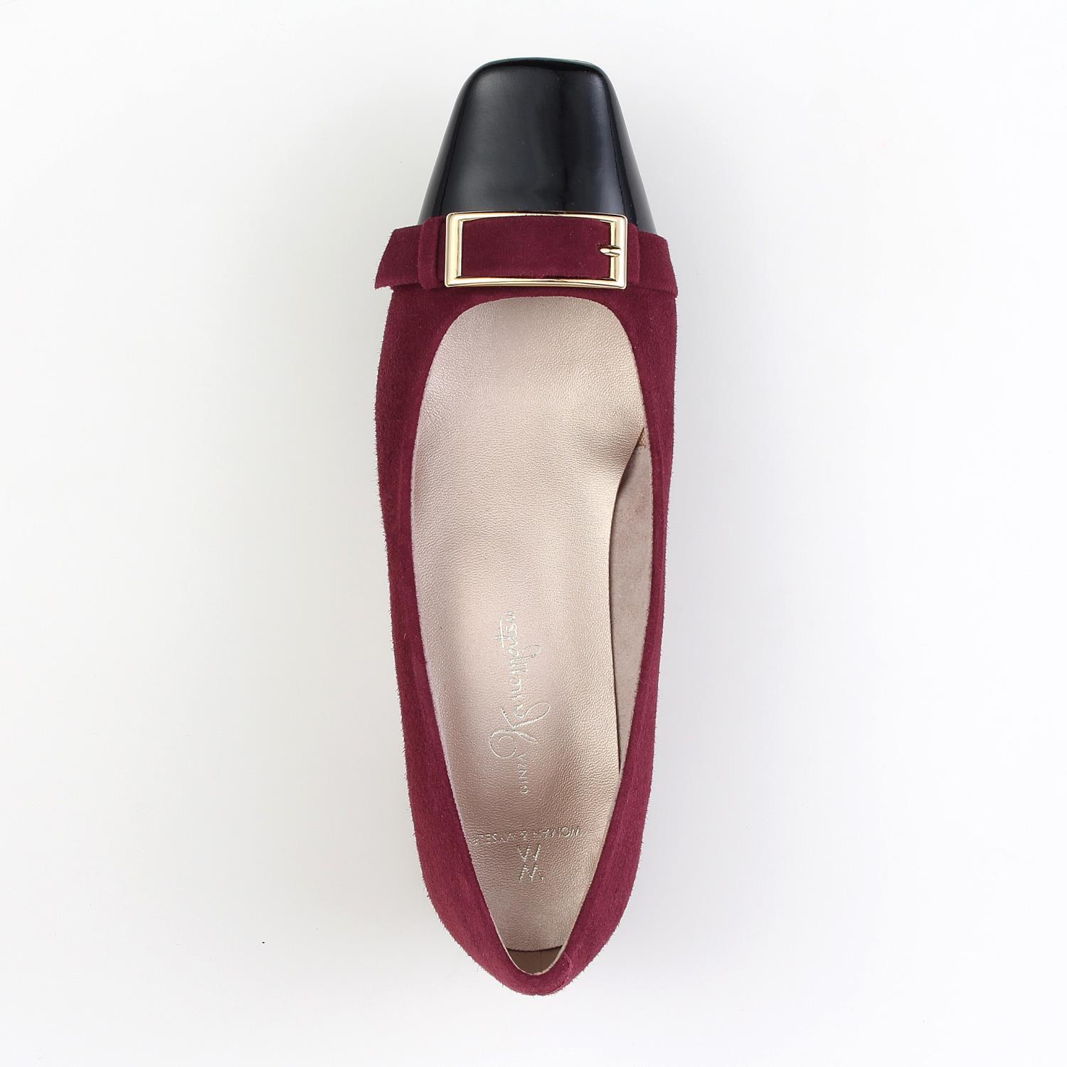 素材:スエード エナメル カラー展開:グレー;ワイン ヒール高さ:30㎜ ウィズ: E ヒール形状:太ヒール ヒール材質:革巻き サイズ展開:21.5cm~25.0cm 原産国:日本