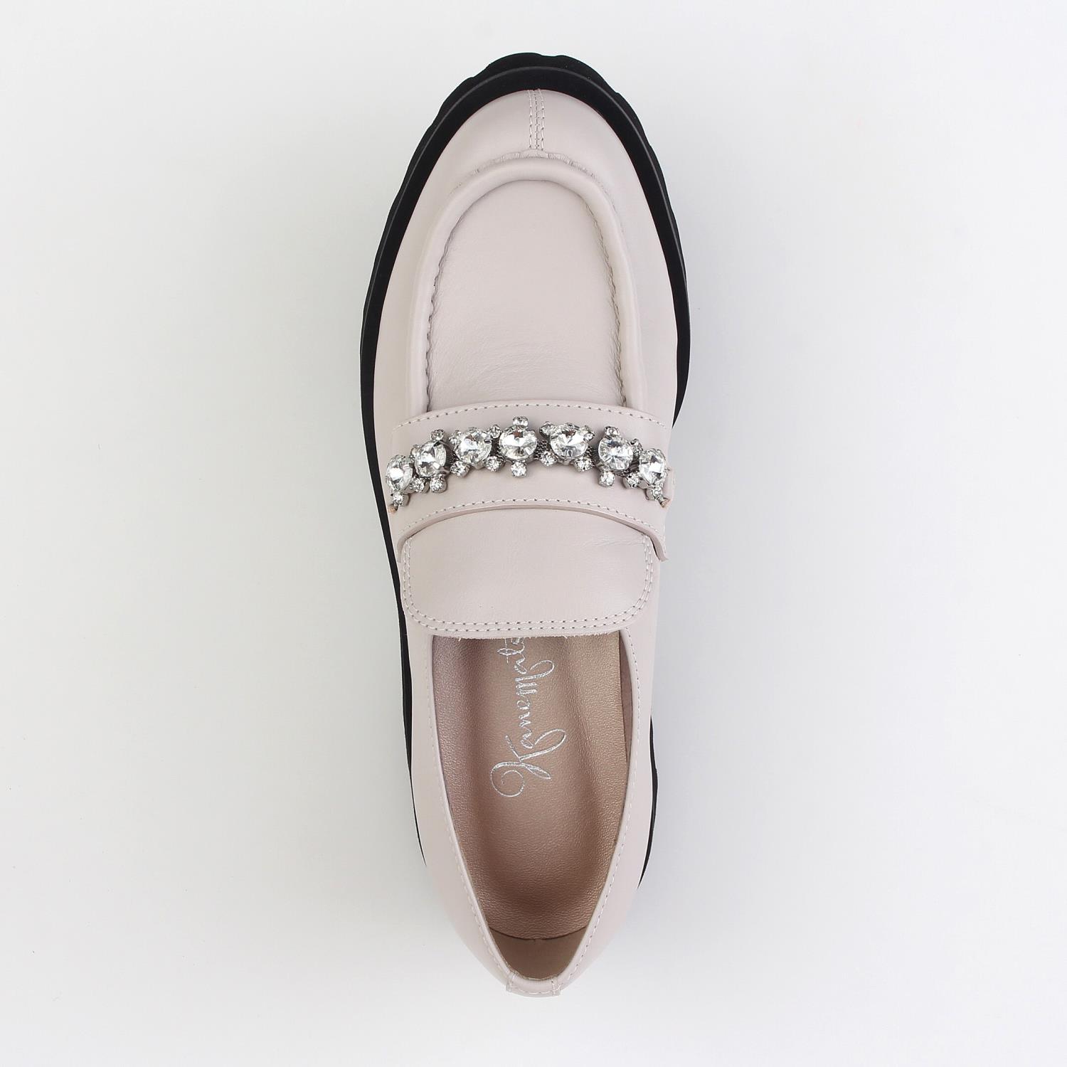 ゆったりめの木型を使用したトラックソールのローファータイプ。 アッパーにクリスタルビジューをあしらい、華やかさをプラス。 適度な足元のボリューム感が、カジュアルスタイルはもちろん、フェミニンスタイルとも好相性な一足です。