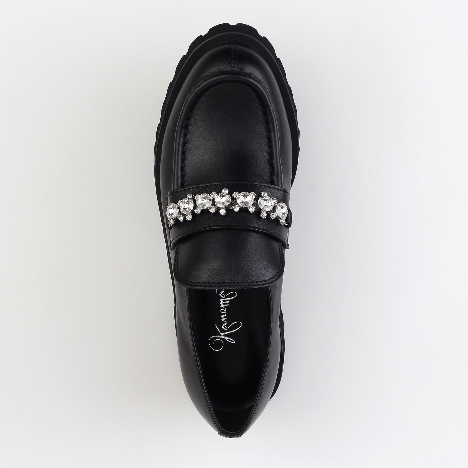 ゆったりめの木型を使用したトラックソールのローファータイプ。 アッパーにクリスタルビジューをあしらい、華やかさをプラス。 適度な足元のボリューム感が、カジュアルスタイルはもちろん、フェミニンスタイルとも好相性な一足です。