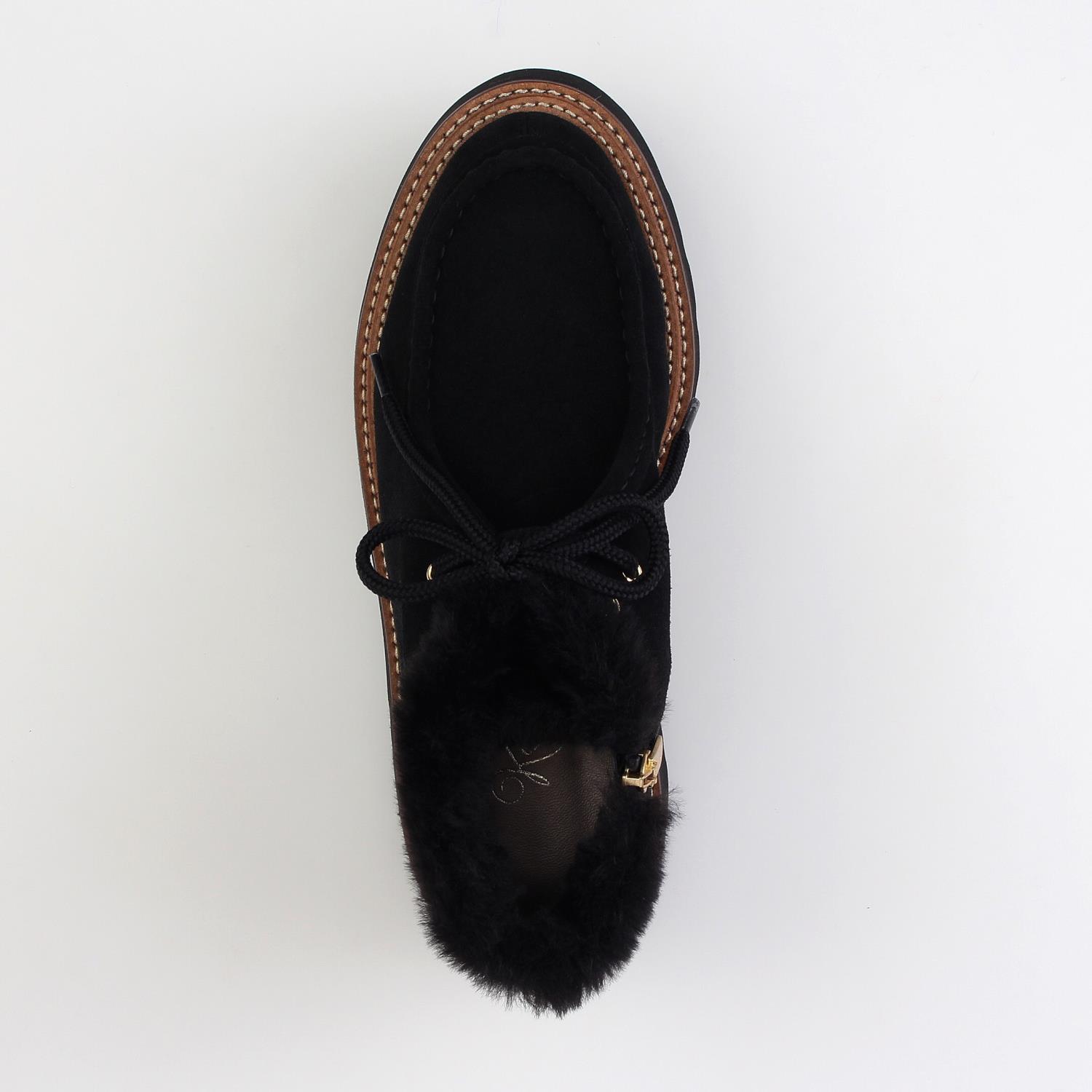 レジャーアクティブシューズを日常に落とし込みキレイめに仕上げたレースアップモカブーツ。 エコファーを足首にあしらい、トレンド感とフェミニンさをプラス。 軽い履き心地でデイユースにぴったりの一足です。内側には着脱しやすいファスナー付き。