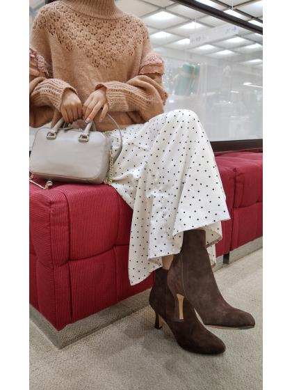素材:スエード カラー展開:オーク;チョコ ヒール高さ:83㎜ ウィズ: D ヒール形状:スタンダード ヒール材質:革巻き ブーツ筒丈:12cm ブーツ筒周り:21cm サイズ展開:21.5cm~25.5cm 原産国:日本