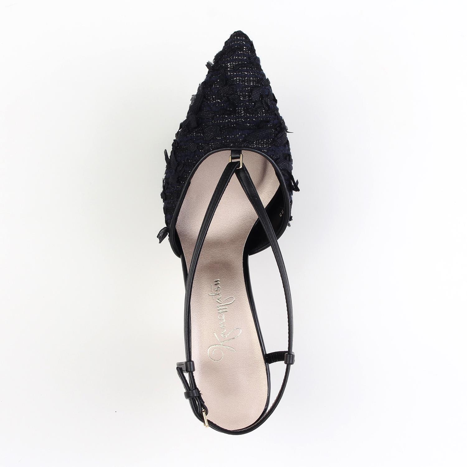 立体感のあるトレンド素材にグリッターを貼り合わせた生地を使用し華やかさをプラスしてくれるバックベルトパンプス。 抜け感がありVストラップで足の甲をキレイに見せてくれるのがポイント。 デイリー&オケージョンに気軽に取り入れられおしゃれ感をアップしてくれる一足です。