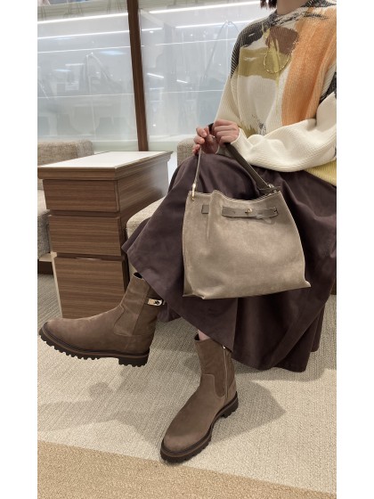 素材:ヌバック カラー展開:ブラウン ヒール高さ:32㎜ ウィズ: E ヒール形状:太ヒール ヒール材質:EVA ブーツ筒丈:18cm ブーツ筒周り:26cm サイズ展開:21.5cm~25.5cm 原産国:日本