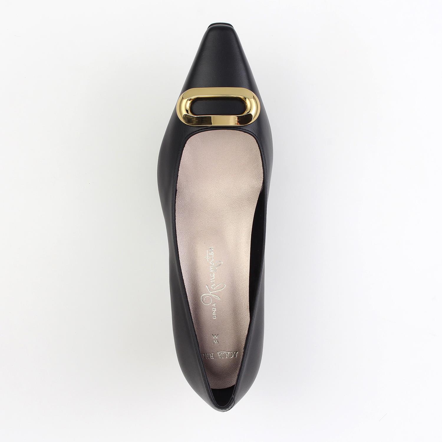 ゆったりめの木型を使用した晴雨兼用のミドルヒールパンプス。 すっきり見えするシャープなスクエアトゥとオーバルのバックルをあしらい上品な印象に。 シンプルクリーンデザインでオフィスはもちろんデイリーにも履きやすい一足です。<WOMAN&MYSELF/AQUA BELL>