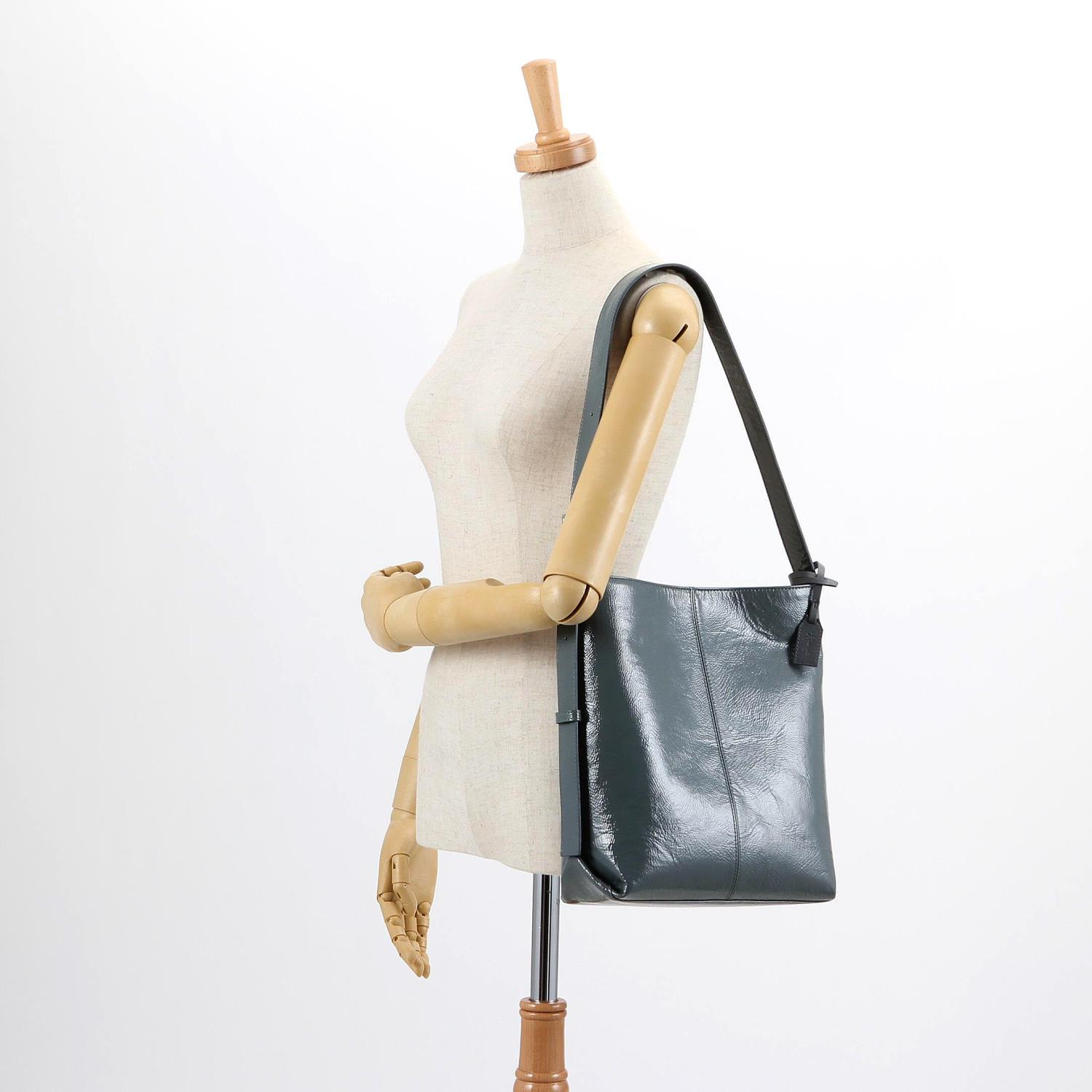 素材:エナメル カラー展開:グレー;ブラック;ピンクベージュ バッグ巾:24cm バッグ高さ:28cm バッグマチ:10cm バッグ立上り:30cm サイズ:M 重さ 375g 原産国:日本