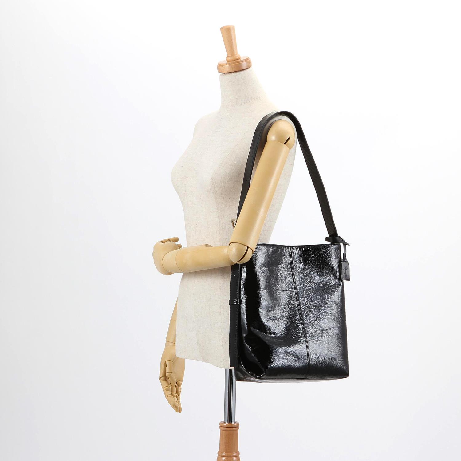 素材:エナメル カラー展開:グレー;ブラック;ピンクベージュ バッグ巾:24cm バッグ高さ:28cm バッグマチ:10cm バッグ立上り:30cm サイズ:M 重さ 375g 原産国:日本