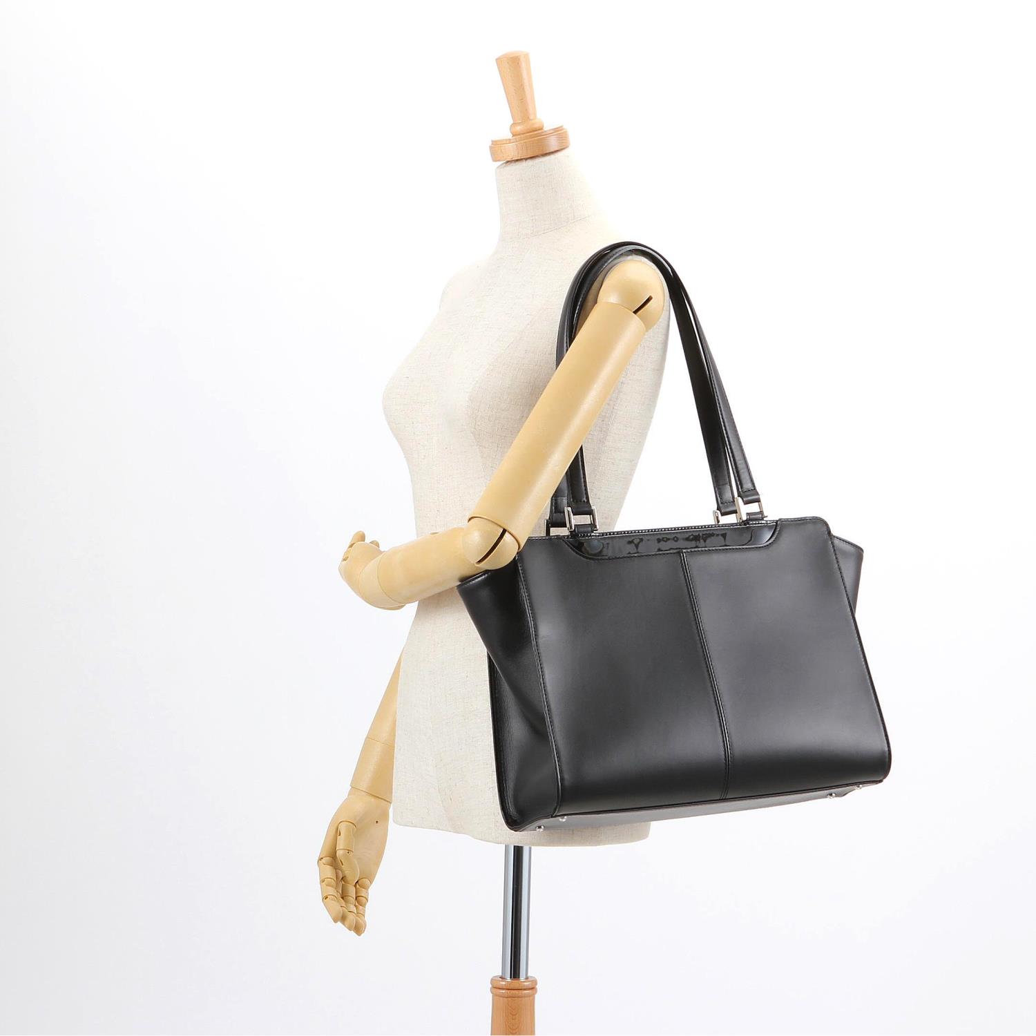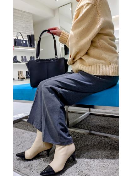A4サイズ対応のシンプルなハンドバッグ。 厚手のアウターでも肩掛けしやすい少し長めの手紐や豊富なポケットで使いやすさも◎。 さり気ない素材コンビを取り入れたきちんと感のあるデザインなので、オフィスシーンにピッタリのアイテムです。