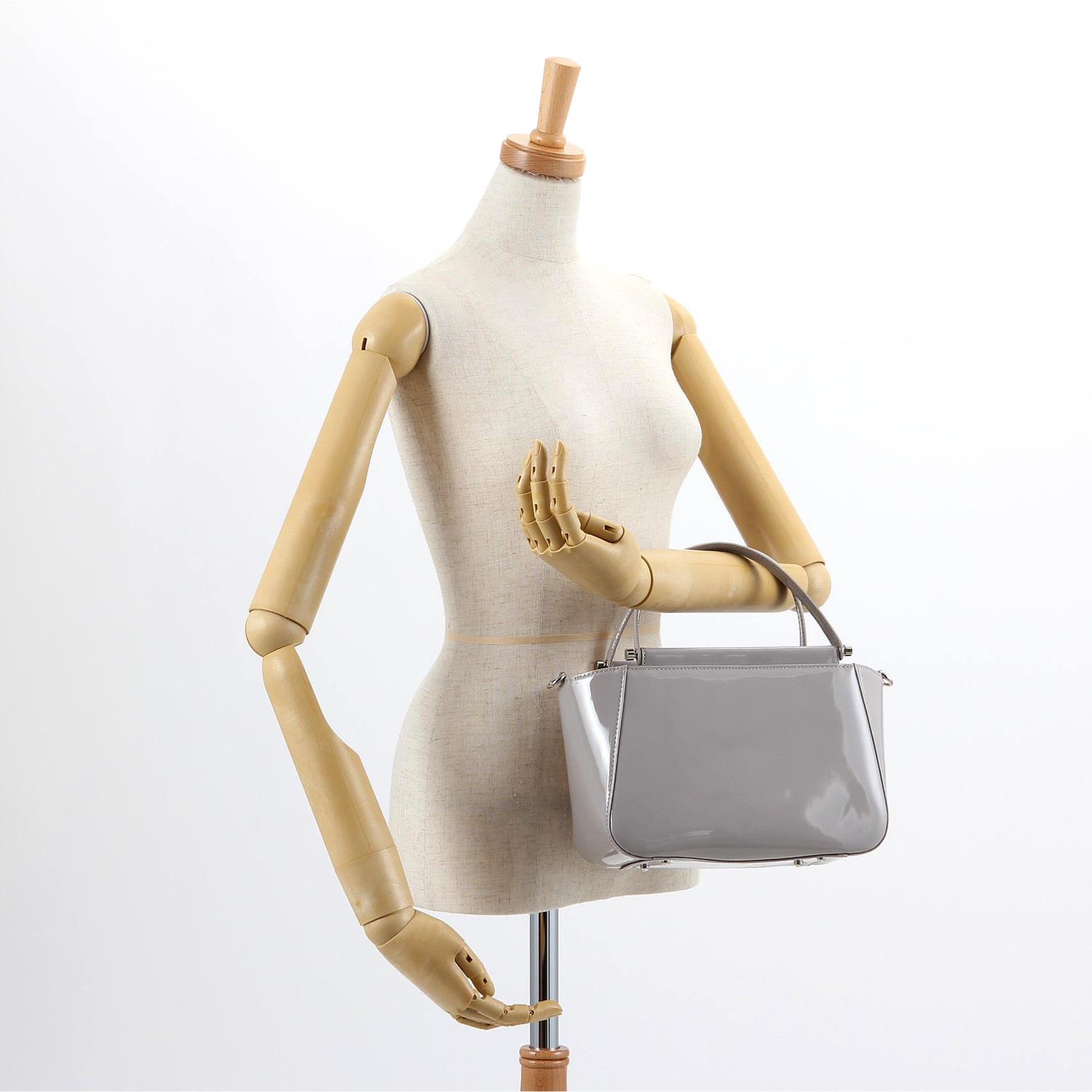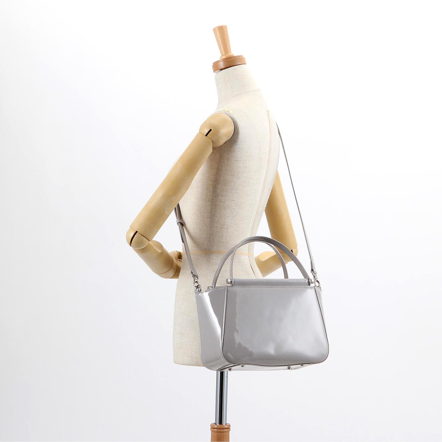 トレンドのエナメル素材で華やかに仕上げたハンドバッグ。 きちんと感のあるデザインとコンパクトなサイズでもしっかり入る収納力が魅力で、オフィスだけでなく会食などのシーンにも使えます。 取り外しのできるショルダー紐が付属した2Way仕様です。