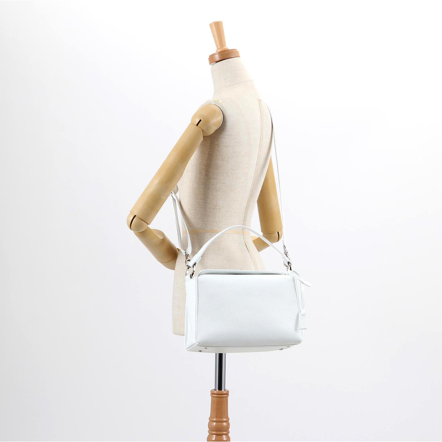 トレンドのボクシーフォルムのワンハンドルバッグです。 ほんのりと横長フォルムなので見た目以上に収納力があるのもデイリー使いしやすいポイントです。 取り外しのできるショルダー紐が付属した2Way仕様です。
