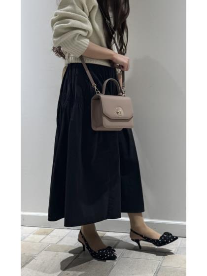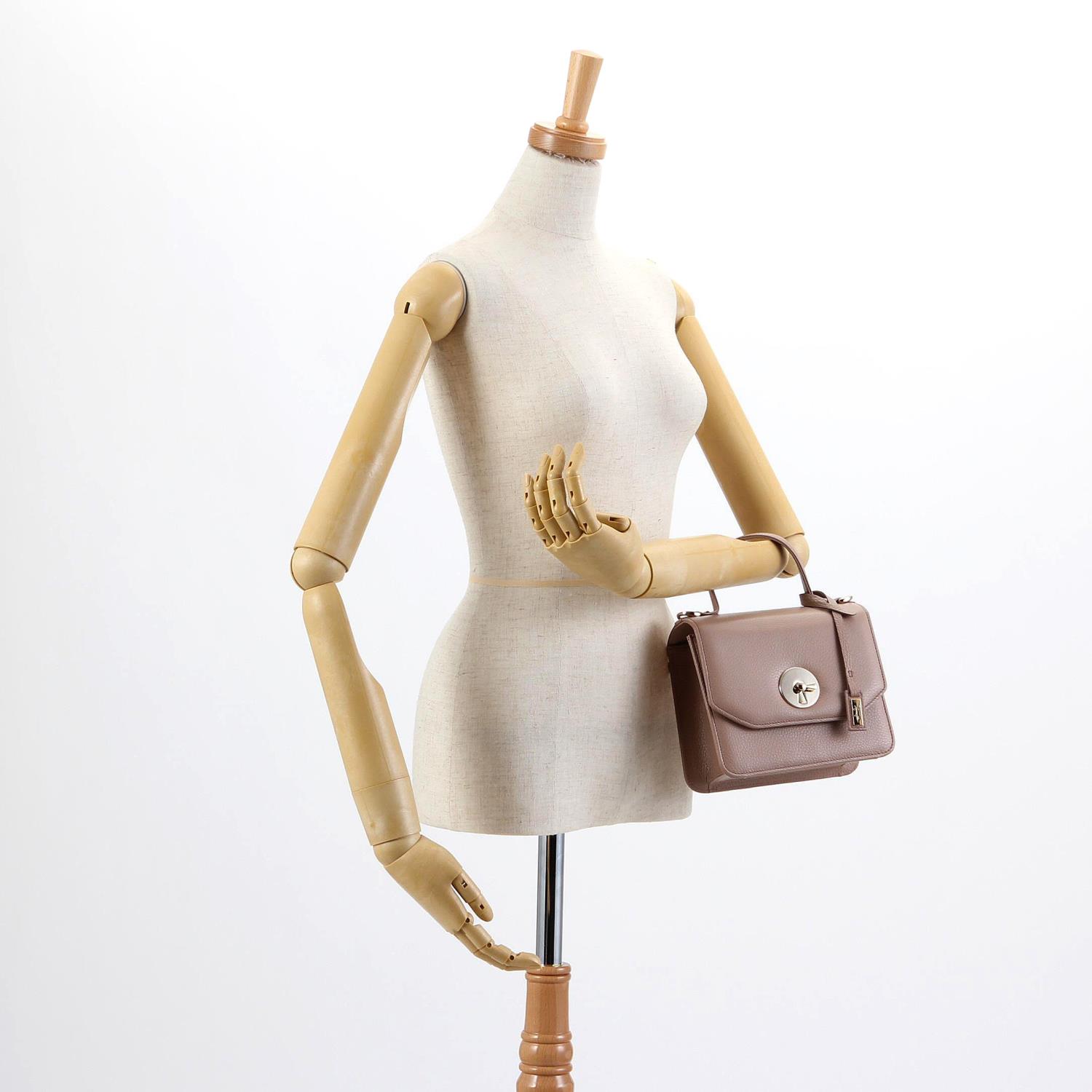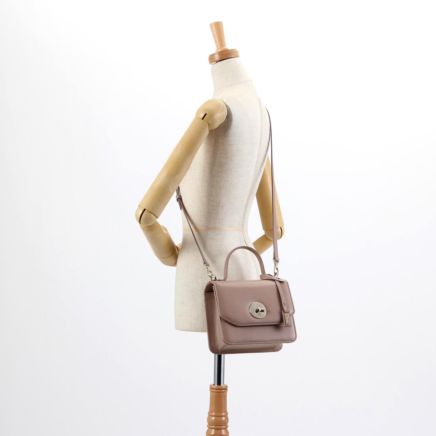 時計のような大きなひねりがレトロな雰囲気のショルダーバッグ。 コーディネートのポイントに使いやすい小さめバランスに仕上げました。 取り外しのできるショルダー紐が付属した2Way仕様です。