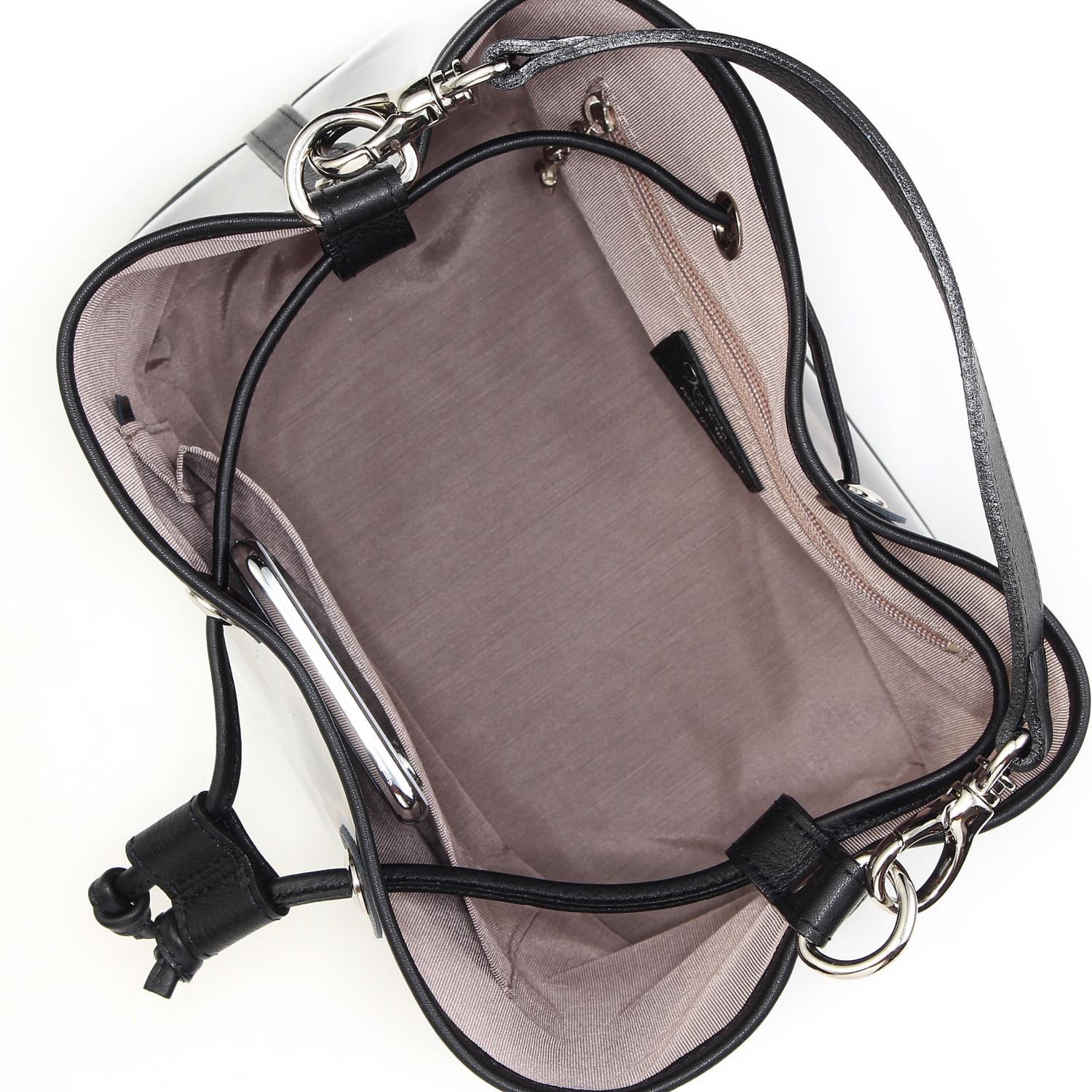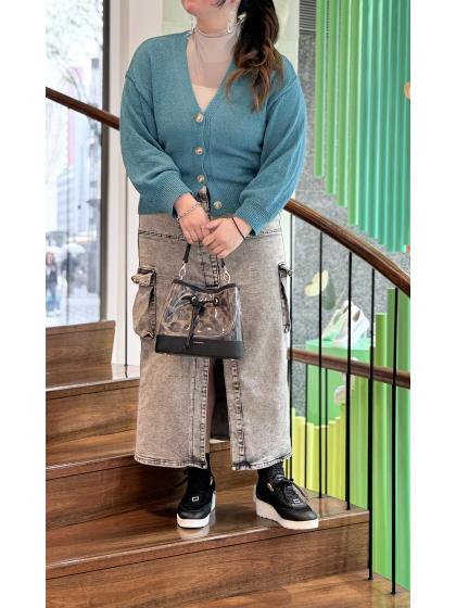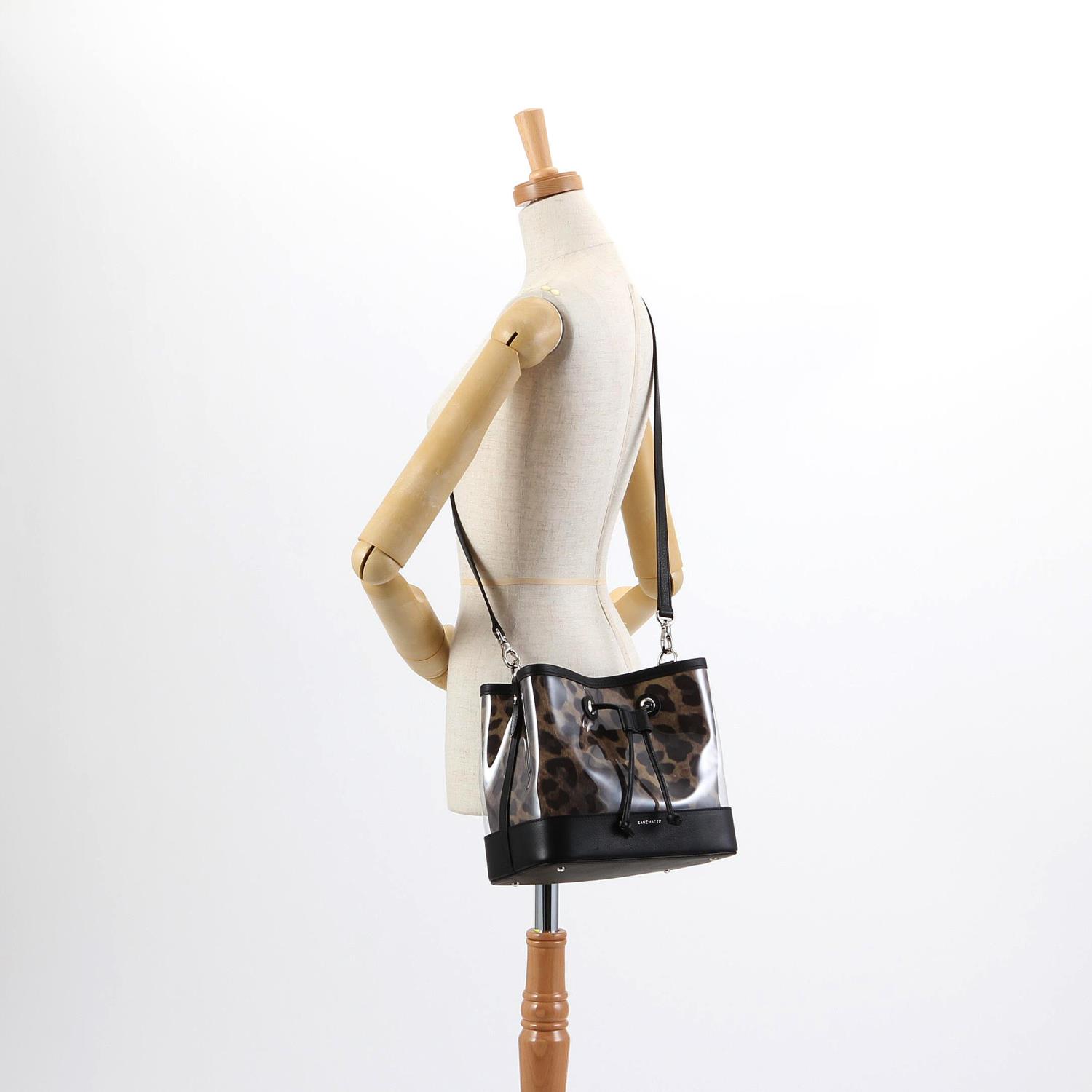トレンドの透明感をPVC素材で表現したショルダーバッグ。 PVCとファブリックが重なって見える表情に、レザートリミングが全体を引き締め大人な雰囲気をプラス。 取り外しのできるショルダー紐が付属した2Way仕様です。