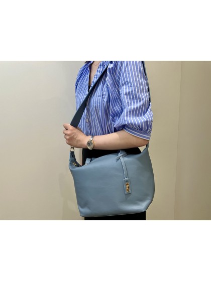 素材:カーフ カラー展開:ピンクベージュ;セージグリーン;スレート バッグ巾:22cm バッグ高さ:22cm バッグマチ:12cm バッグ立上り:21cm サイズ:M 重さ 135g 原産国:イタリア