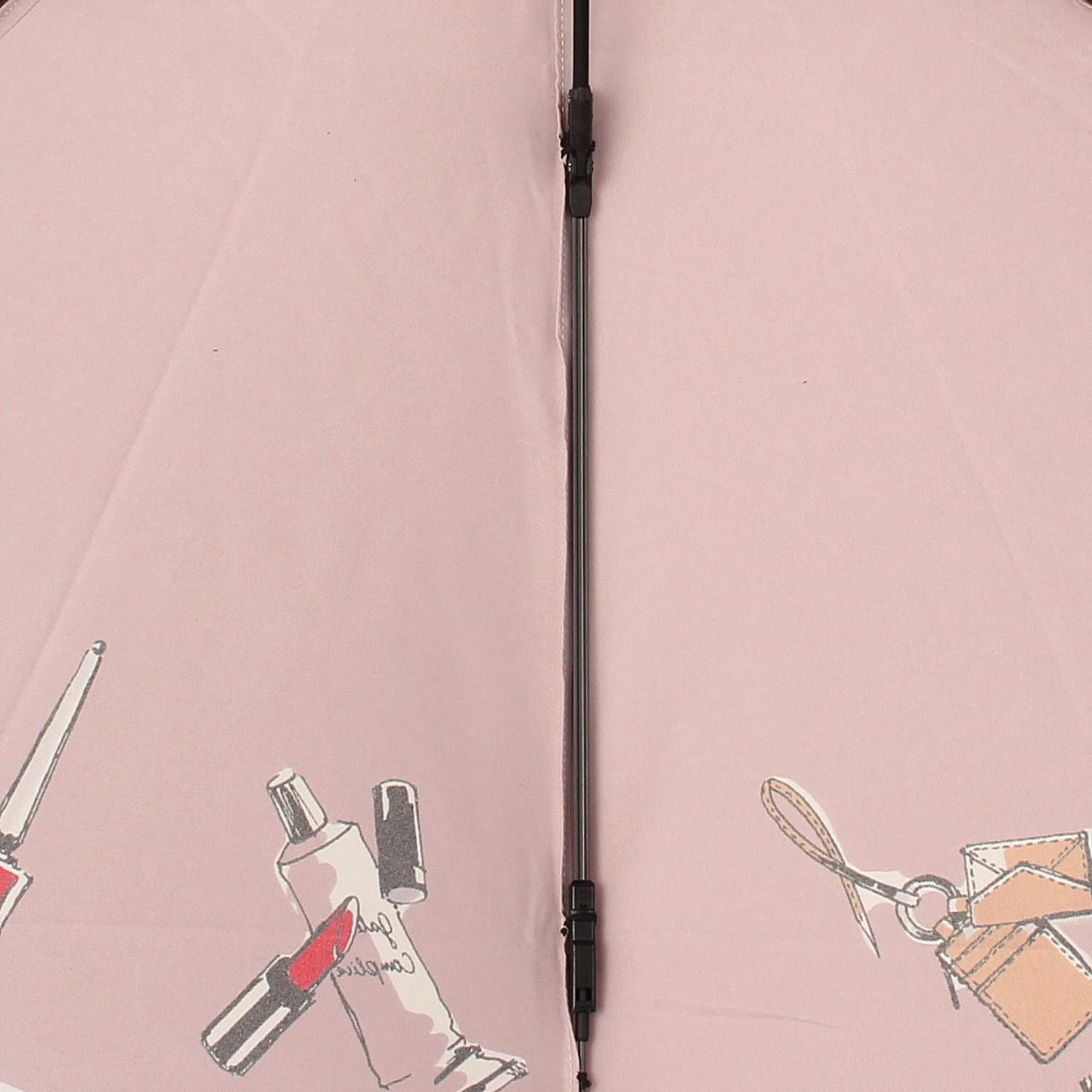 シューズだけでなくファッション雑貨やコスメを描いた女性らしいデザインの折りたたみ傘。 黒の縁取りが全体の印象を引き締めます。 可愛らしさに程よい大人っぽさをプラスしているので、お仕事コーデにもピッタリのアイテムです。