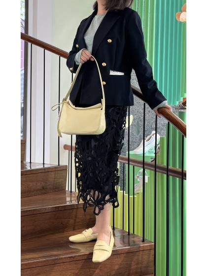 アシンメトリーフォルムが今シーズンらしいムードの肩掛けワンショルダーバッグ。 トップをプチフラップ&ファスナー仕様にしており、ディテールにさり気ないデザイン性をプラス。 口開きがファスナー仕様なので防犯面も安心です。長めのショルダーベルトも今シーズンらしいポイントです。