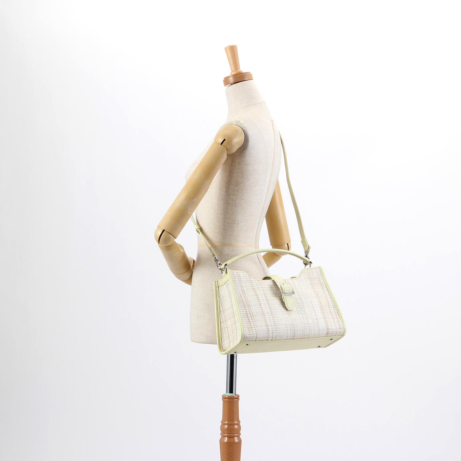 パナマ素材を使用し、シーズンムードを盛り上げるミディアムサイズのショルダーバッグ。 きちんと感とシティ感を演出でき、キレイめな雰囲気で持てるのでON・OFF問わず使える汎用性の高いアイテムです。 取り外しのできるショルダー紐が付属した2Way仕様です。
