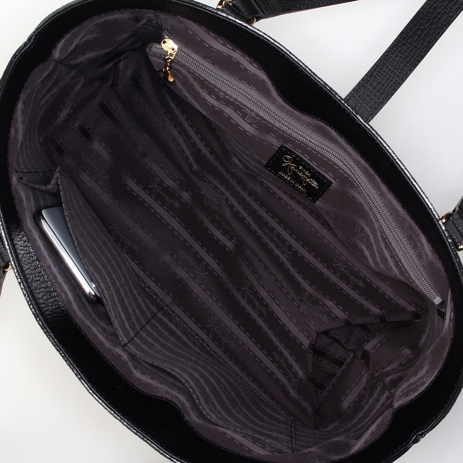素材:型押し(本革) カラー展開:ブラック;ピンクベージュ;スレート;ダークブルー バッグ巾:34cm バッグ高さ:26cm バッグマチ:13cm バッグ立上り:26cm サイズ:L 重さ 760g 原産国:日本
