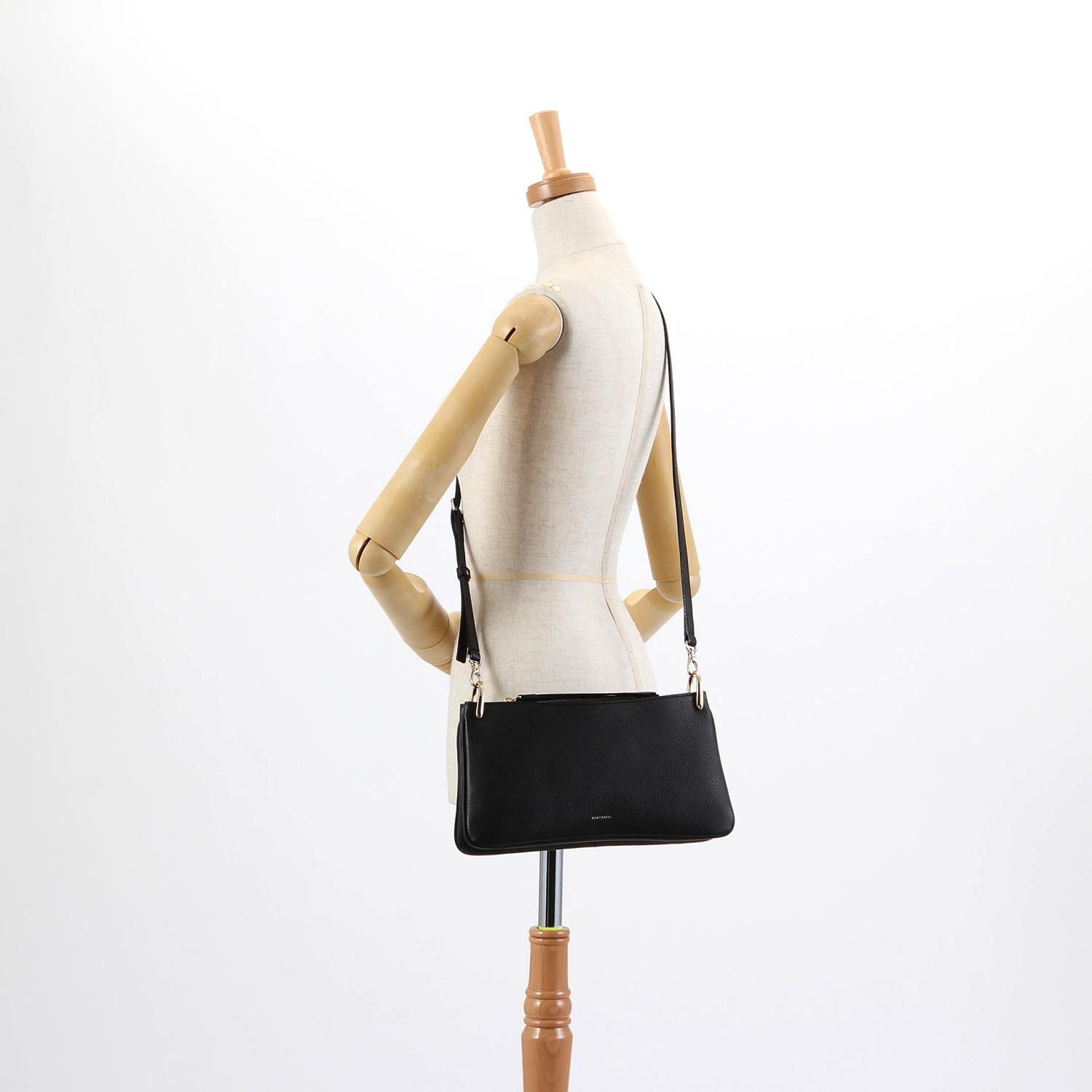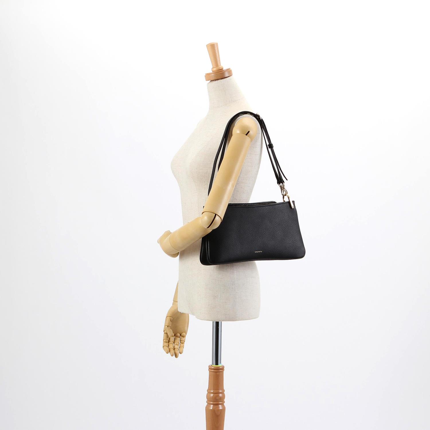 シンプルでコンパクトなショルダーバッグ。 スワローテイルのように2つに分かれたマチがポイント。 手紐は2重にすればショルダーに、伸ばせば斜め掛けで使える2Way仕様です。