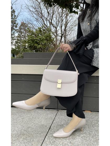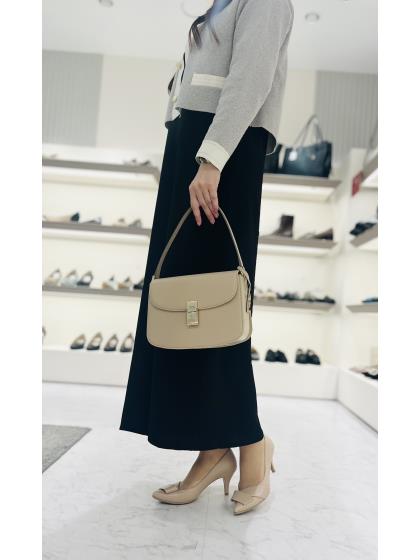 きちんと感がある正統派のワンハンドルフラップバッグ。 存在感のある縦長のバー金具が格と品をプラスします。 タイムレスに使えるクラシックなアイテムです。