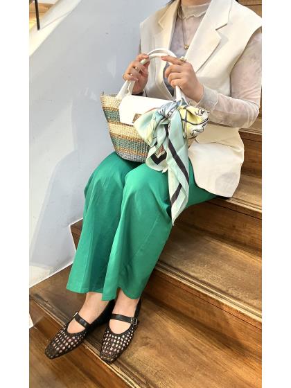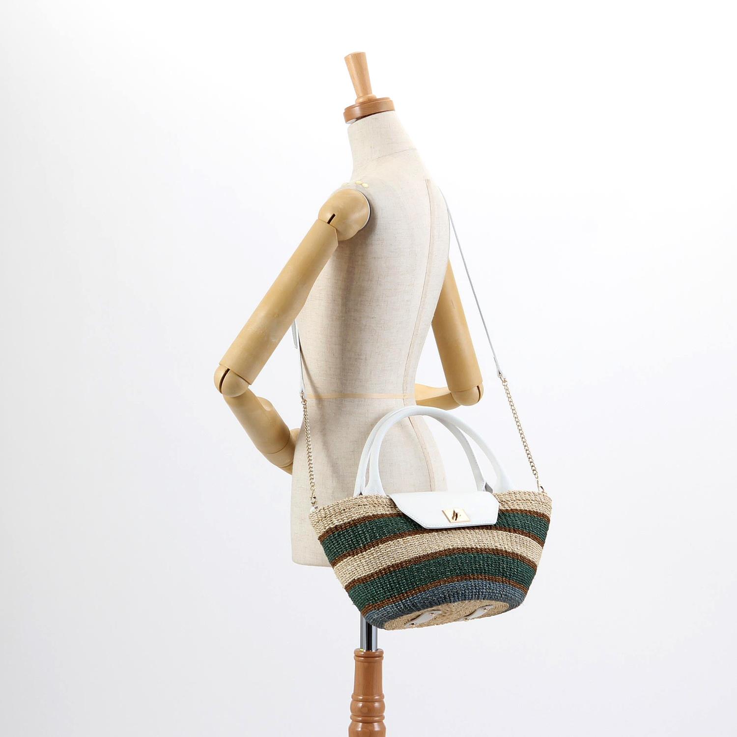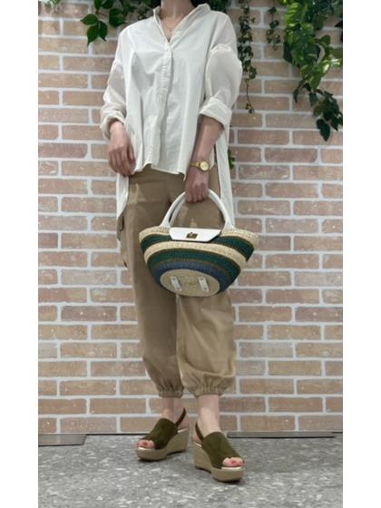 キレイめな雰囲気でも持ちやすく、程よいサイズ感がポイントの被せタイプのカゴバッグ。 ボーダー柄もカジュアルでありつつ華やかな印象でコーディネートの効かせに◎のアイテムです。 取り外しのできるショルダー紐が付属した2Way仕様です。