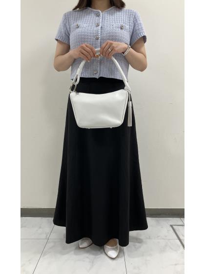 やや台形風のシルエットに丸みのあるハンドルとタッセルがポイントのショルダーバッグ。 コンパクトながらマチがしっかりあるので見た目以上の収納力◎。天ファスナー仕様で防犯面も安心です。 トレンドのボクシーシルエットがコーディネートのアクセントにおススメのアイテムです。