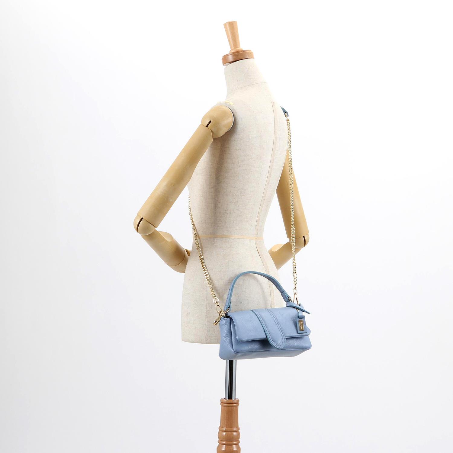 素材:型押し(本革) カラー展開:ピンク;イエロー;サックスブルー;シルバー バッグ巾:20cm バッグ高さ:10cm バッグマチ:6cm バッグ立上り:11cm サイズ:S 重さ 330g 原産国:イタリア