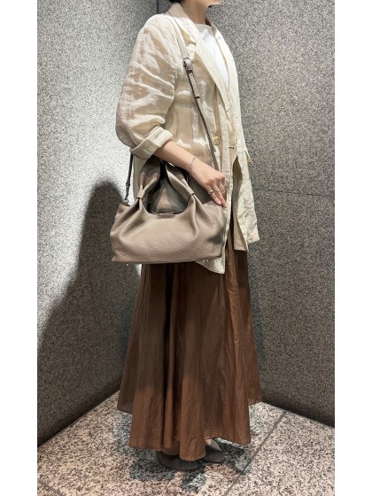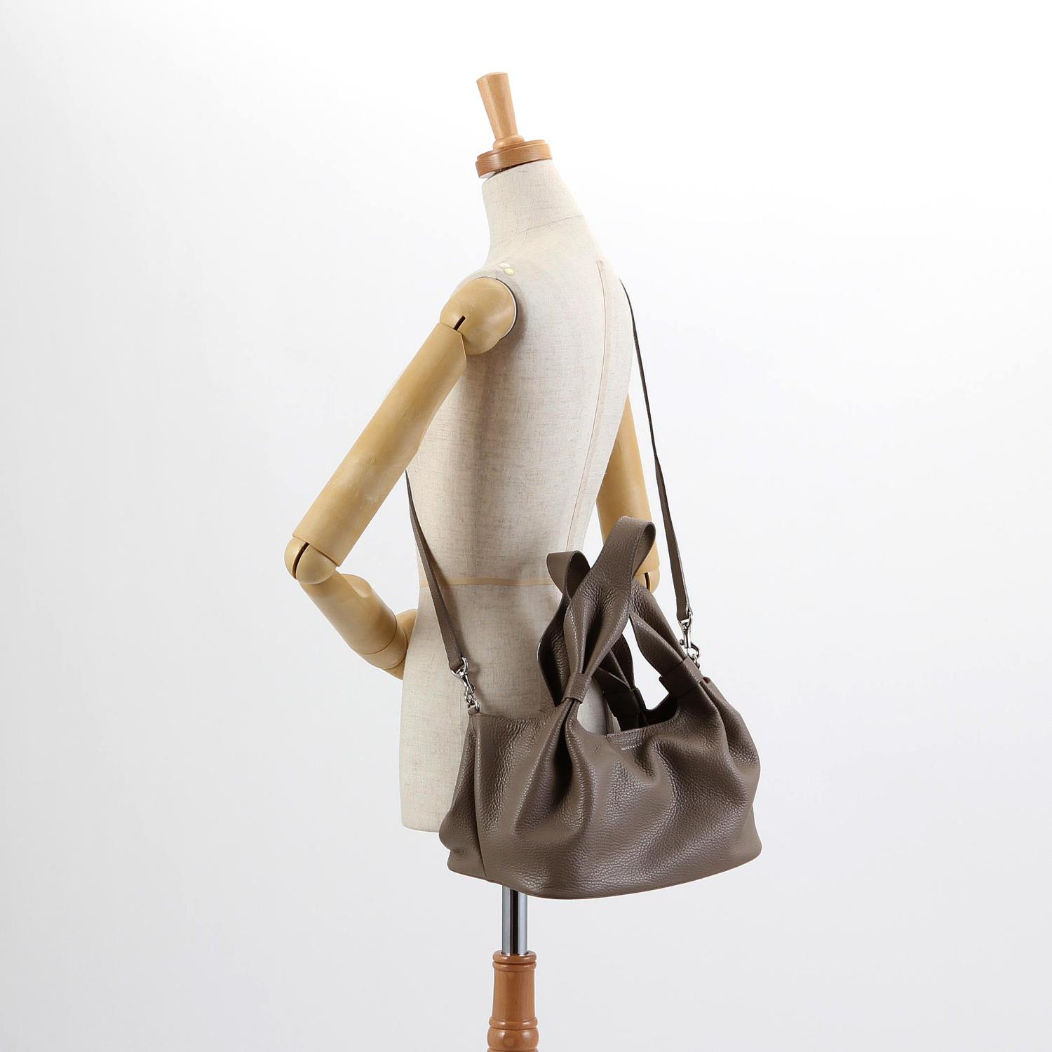 丸みのあるシルエットが女性らしい印象のショルダーバッグ。 ハンドルから本体にかけてできる曲線を描くドレープが柔らかさと華やかさを演出します。 取り外しのできるショルダー紐が付属した2Way仕様です。