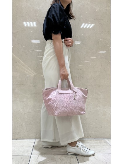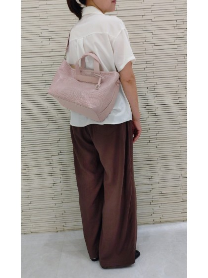 素材:型押し(本革) カラー展開:ピンク;オーク;ブルー バッグ巾:42cm バッグ高さ:26cm バッグマチ:16cm バッグ立上り:11cm サイズ:M 重さ 520g 原産国:イタリア