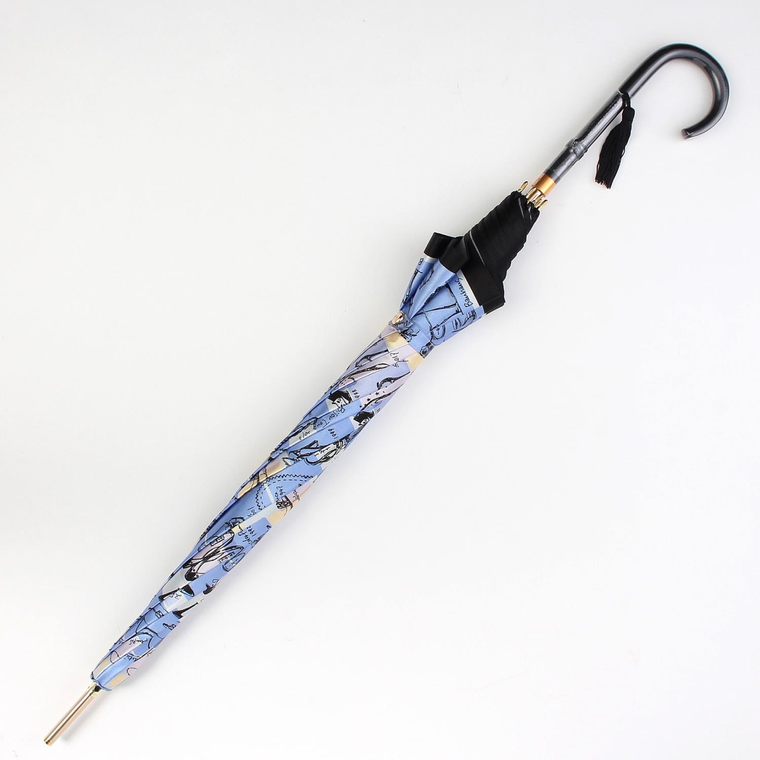銀座かねまつの様々なモデルのシューズやバッグを描いた長傘。 持つだけでコーディネート全体を明るい印象にしてくれます。 開きやすいジャンプ式も嬉しいポイントです。