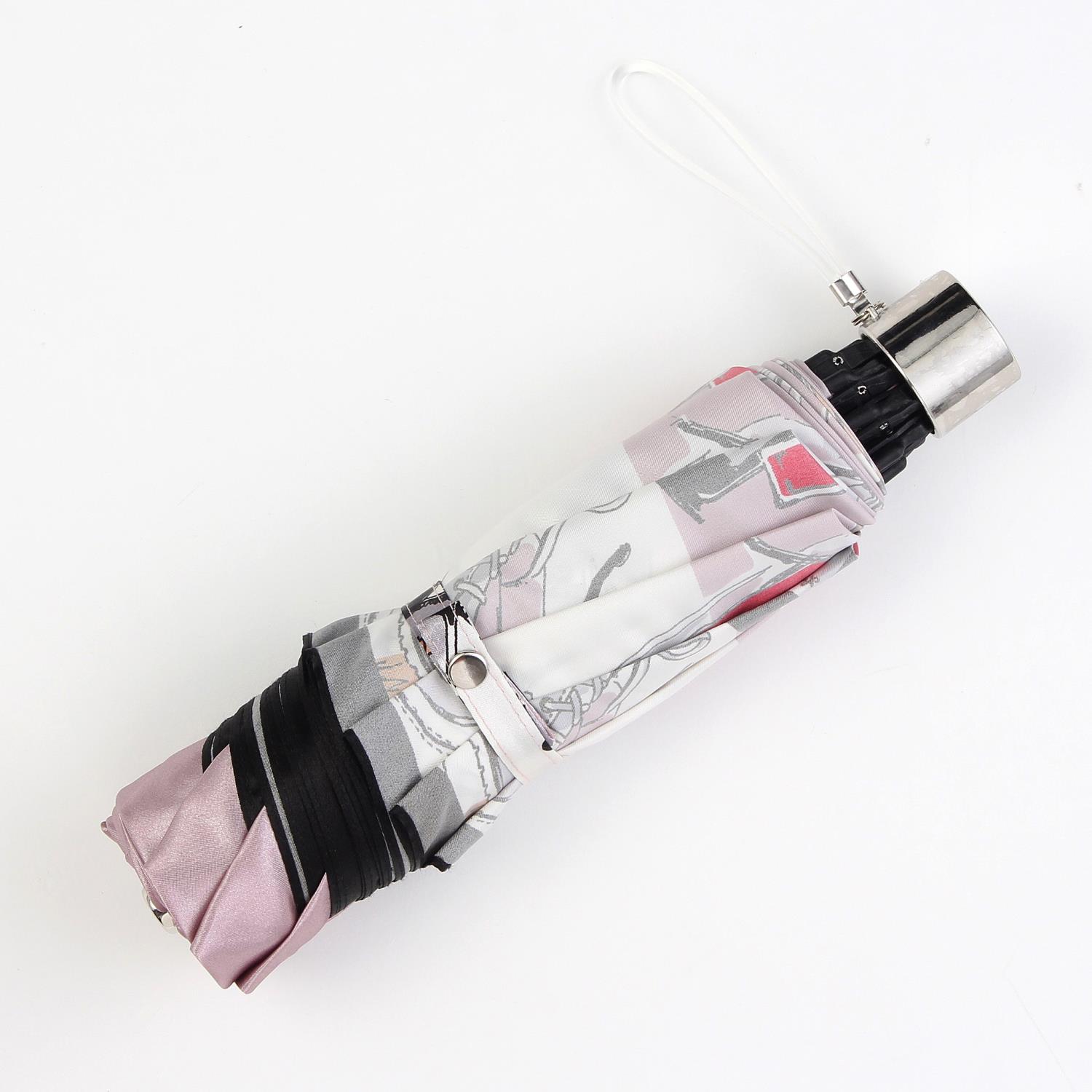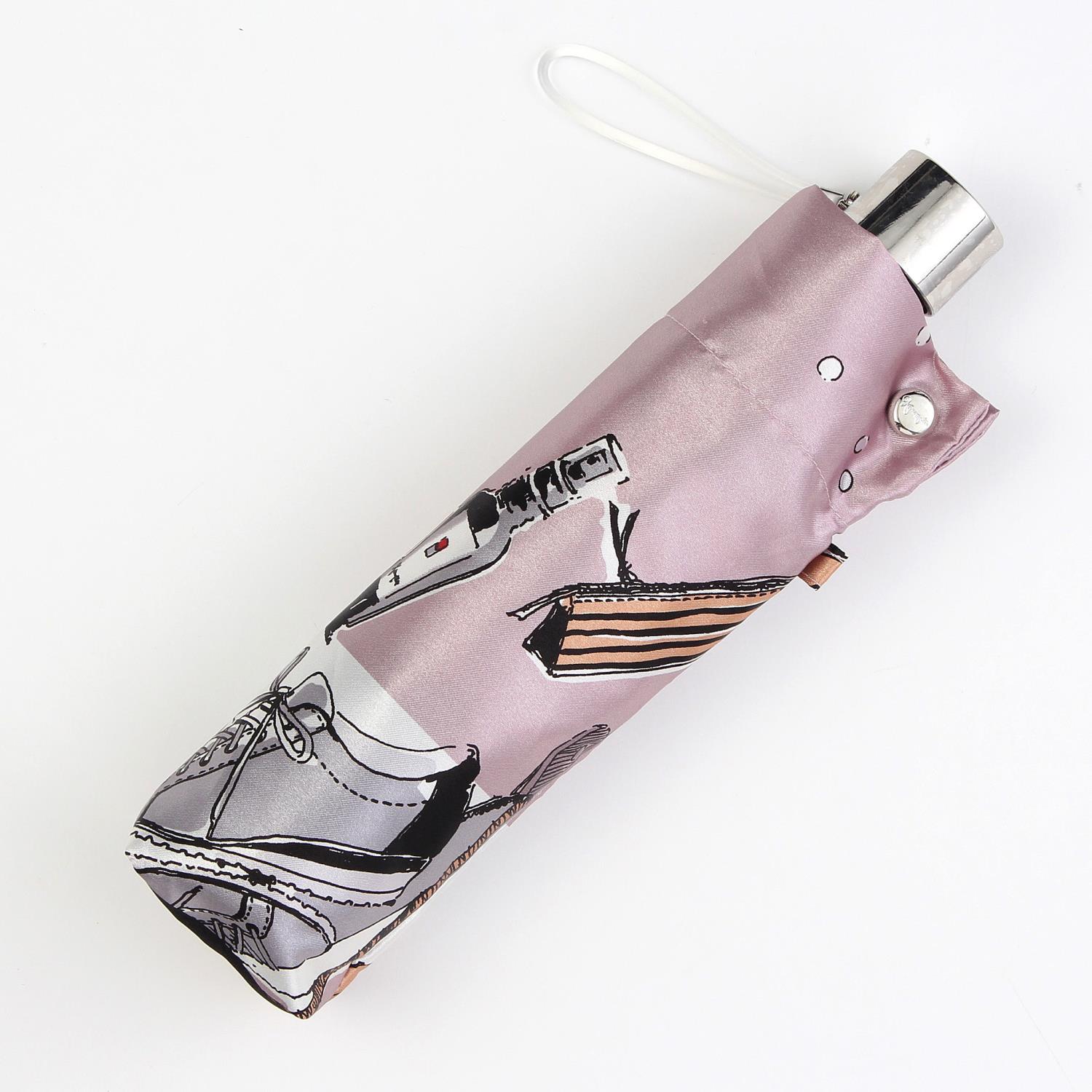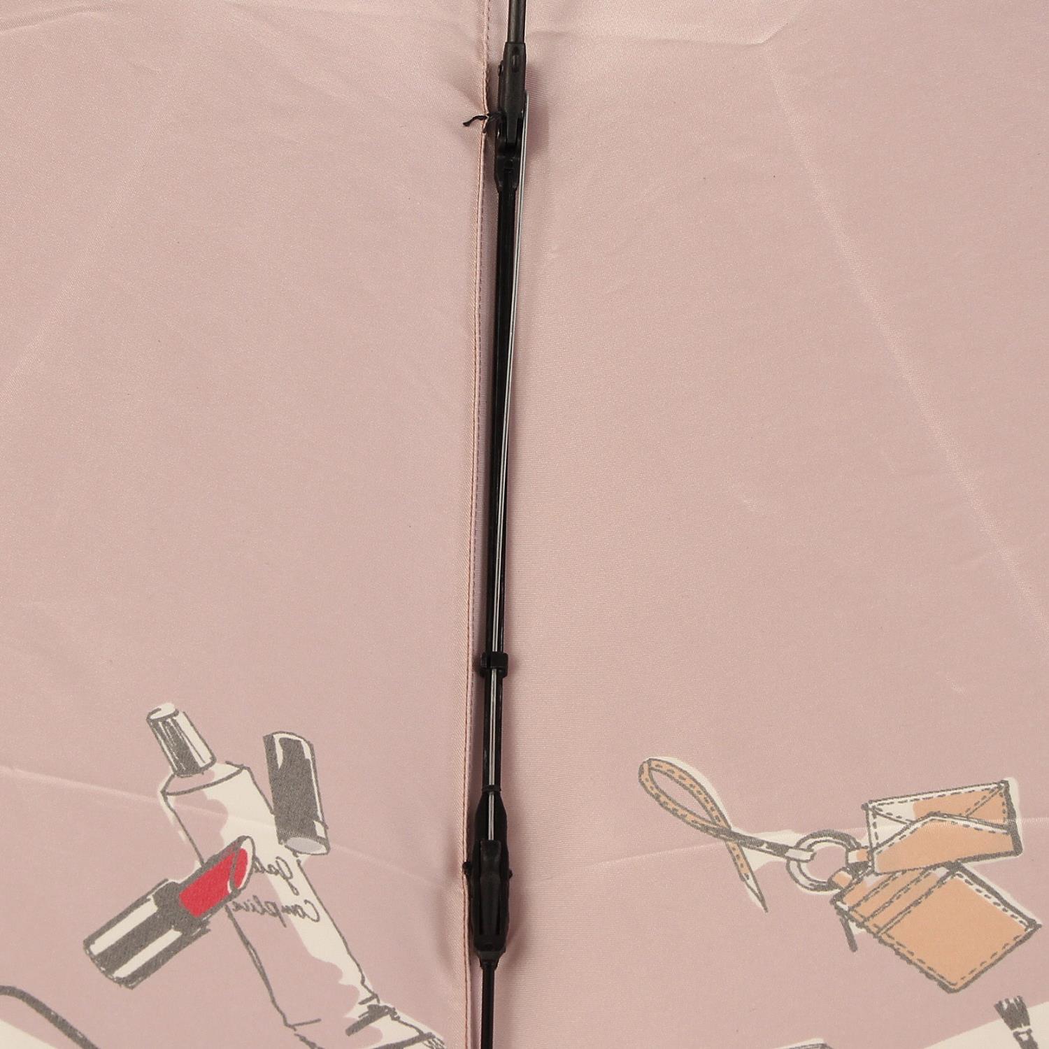 シューズだけでなくファッション雑貨やコスメを描いた女性らしいデザインの折りたたみ傘。