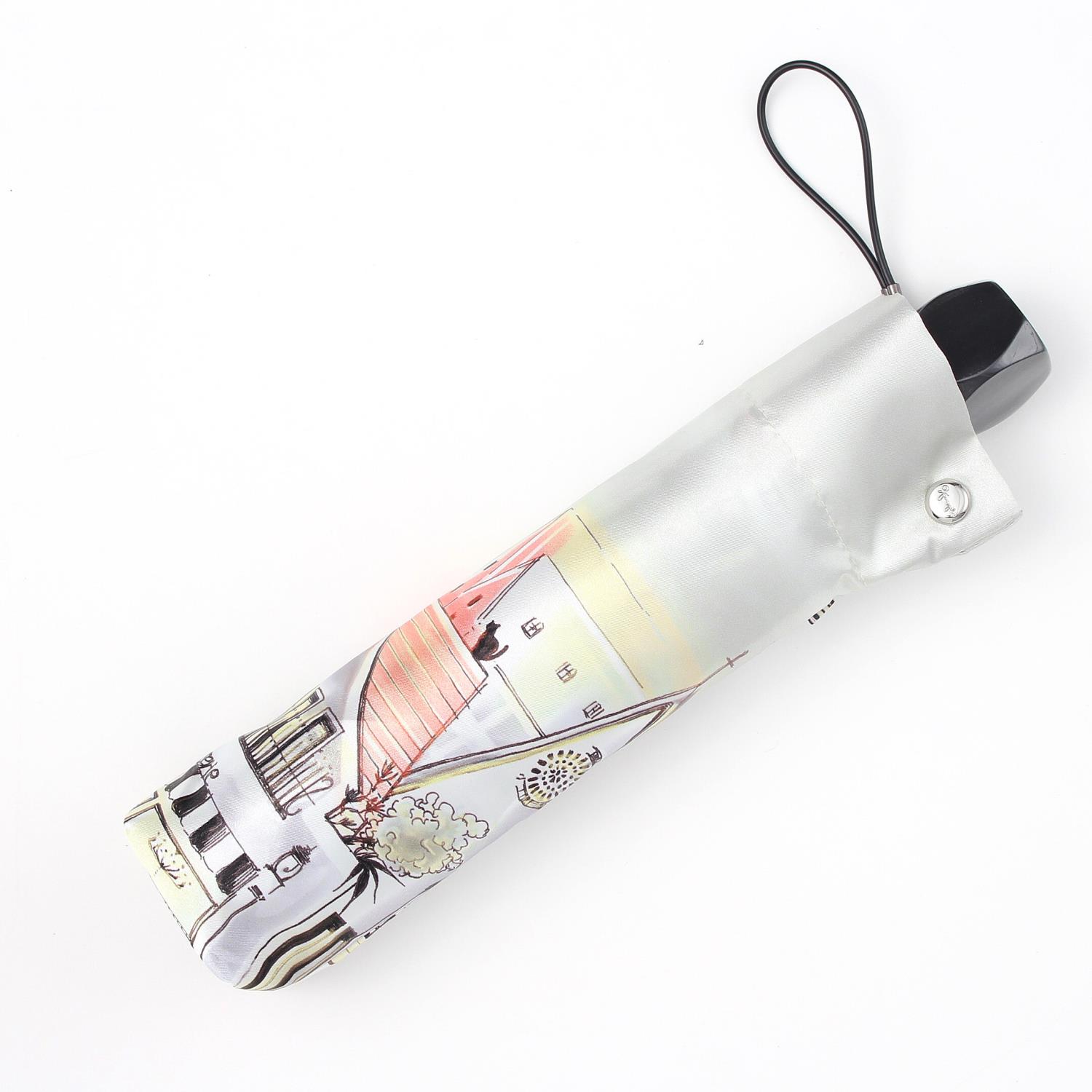 パリの街並みを描いたオリジナルプリントがポイントの折りたたみ傘。 明るい色使いが雨の日も楽しい気分にさせてくれそう。 大人の女性にピッタリのアイテムです。