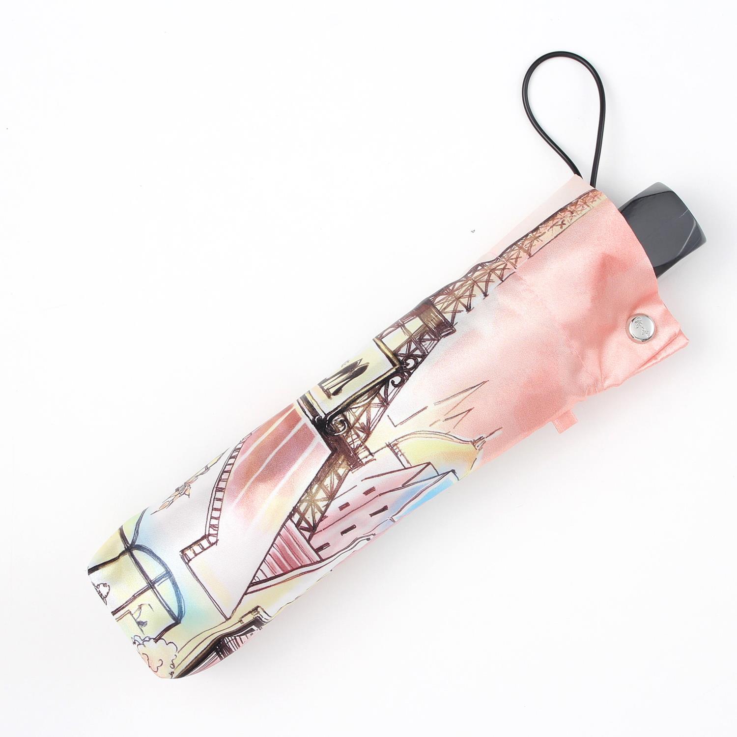 パリの街並みを描いたオリジナルプリントがポイントの折りたたみ傘。 明るい色使いが雨の日も楽しい気分にさせてくれそう。 大人の女性にピッタリのアイテムです。