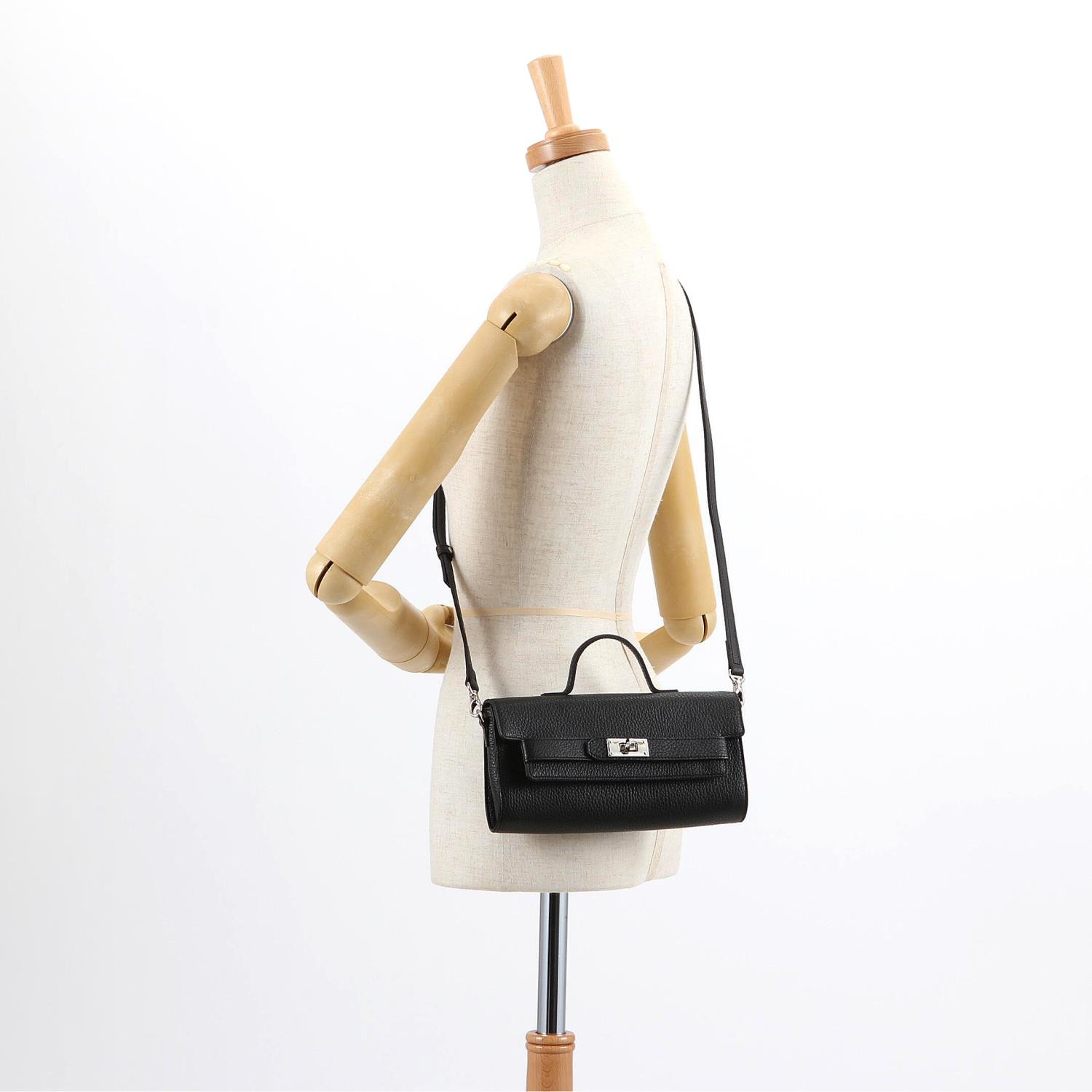 これ1つでも外出可能なお財布機能付きウォレットバッグ。 カード、紙幣、小銭や鍵などを入れるポケットが充実し、ショルダー紐を外せばバッグインバッグとしても使えます。 ターンロックモチーフで今っぽさもプラスしてくれるアイテムです。