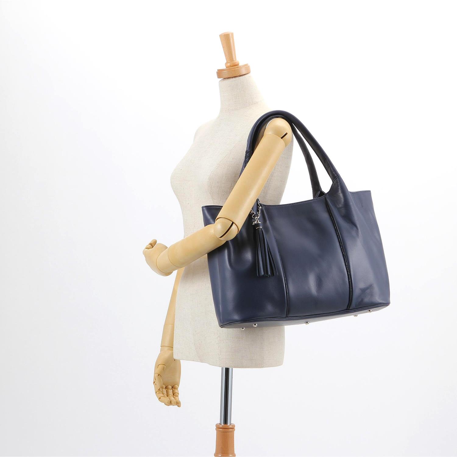 素材:ステア(牛革) カラー展開:ピンクベージュ;ダークブルー バッグ巾:36cm バッグ高さ:26cm バッグマチ:13cm バッグ立上り:20cm サイズ:L 重さ 665g 原産国:日本