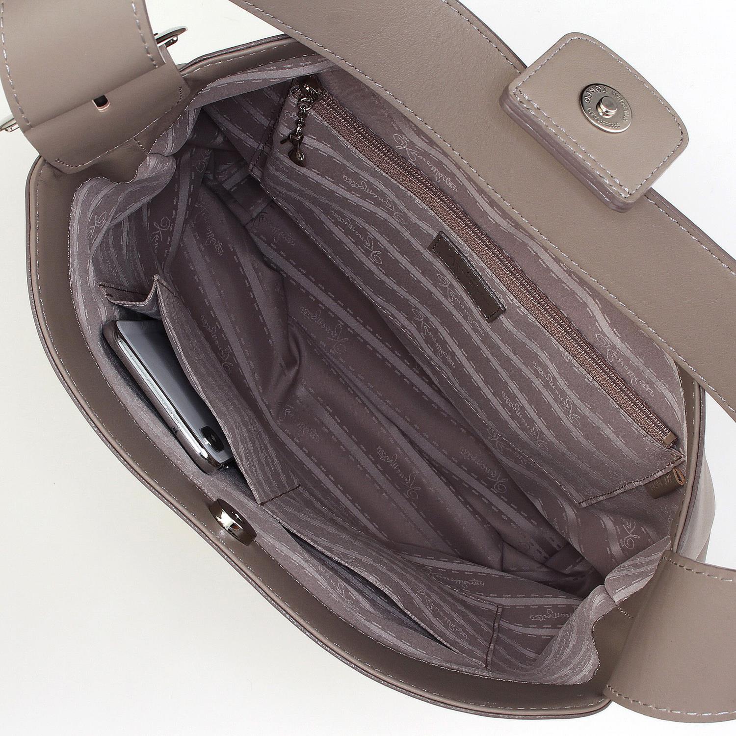 ウォータープルーフ機能のあるレザーを使用した縦長ショルダーバッグ。