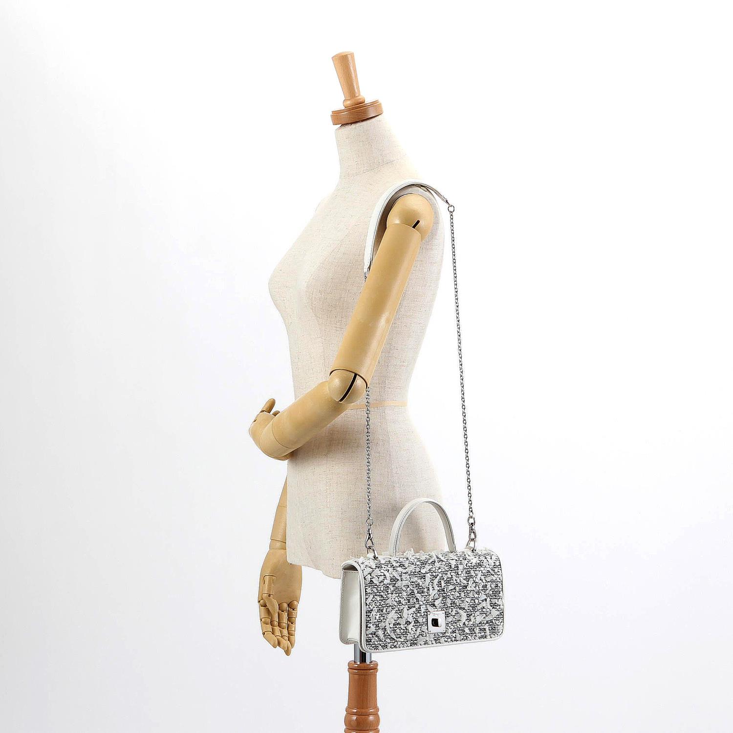オケージョンシーンにはもちろん、カジュアルダウンしたスタイルとも好相性。取り外しのできるショルダー紐が付属した2Way仕様です。