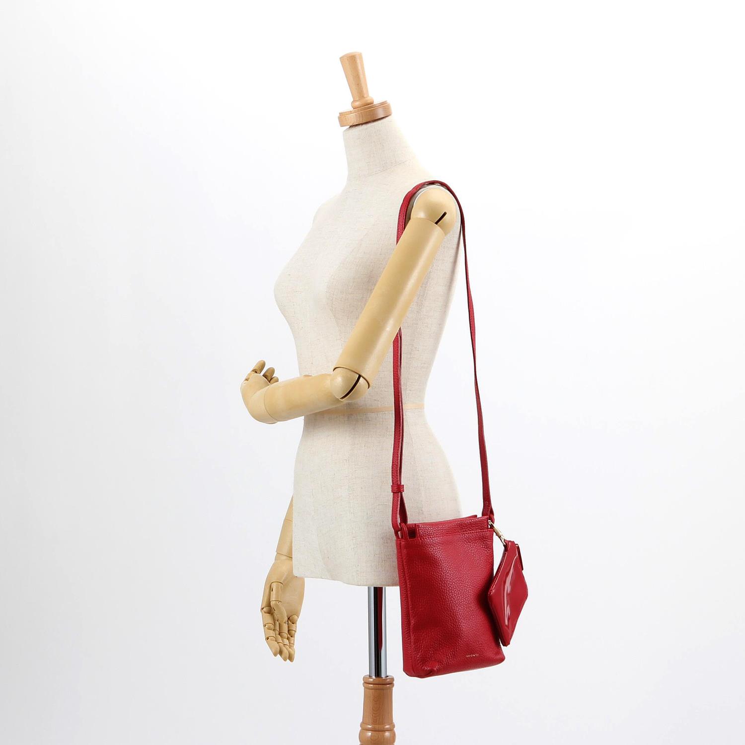 スマホが入るサイズのショルダーバッグに、二つ折りのお札がピッタリ入るサイズ感のミニウォレットがセットでついています。