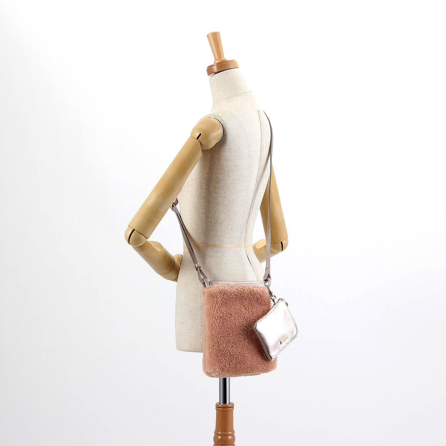 もこもこのファーがシーズンムードを盛り上げるミニショルダーバッグ。 スマホが入るサイズのショルダーバッグに、二つ折りのお札がピッタリ入るサイズ感のミニウォレットがセットでついています。 これ一つでお出掛けできる便利アイテムです。