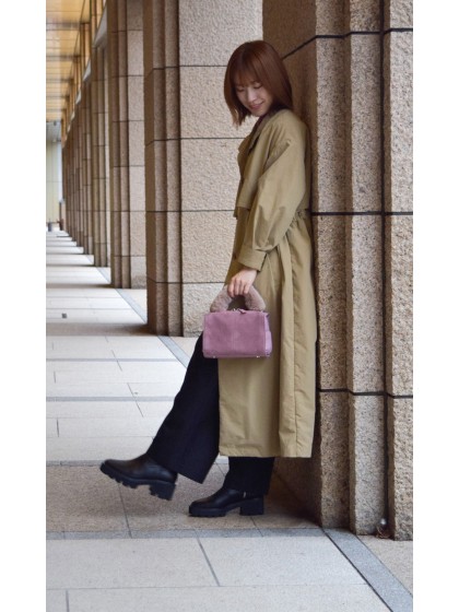 素材:スエード コンビ カラー展開:ダークグレー;ダスティピンク;ダークブルー バッグ巾:20cm バッグ高さ:14cm バッグマチ:13cm バッグ立上り:8cm サイズ:S 重さ 355g 原産国:日本