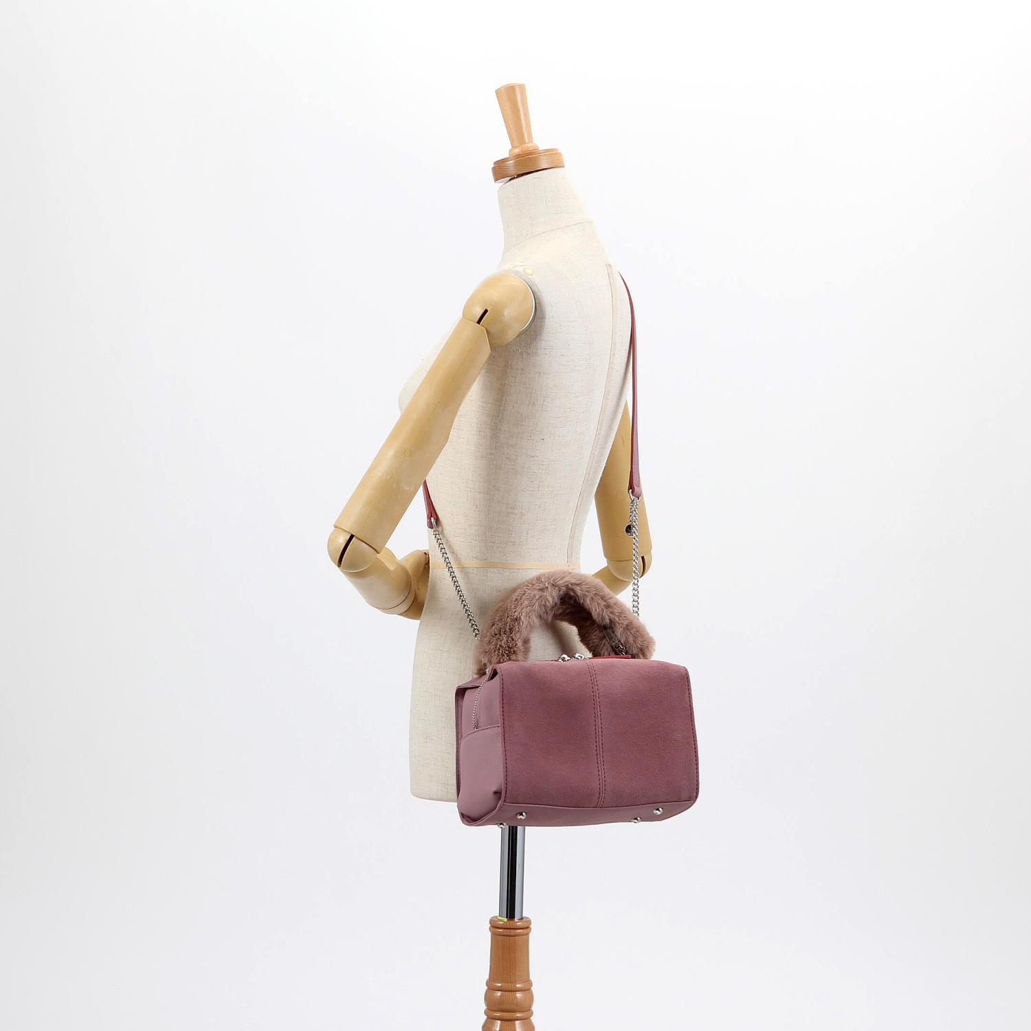 トレンドのボクシーフォルムが今っぽいスエードのワンハンドルバッグ。 ファーの手紐はファスナーで取り外し可の仕様になっているのでスタイリングに合わせて表情を変えられるのがポイントです。 取り外しのできるショルダー紐が付属した2Way仕様です。