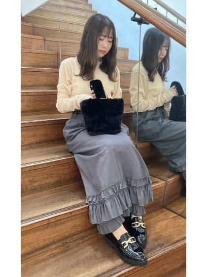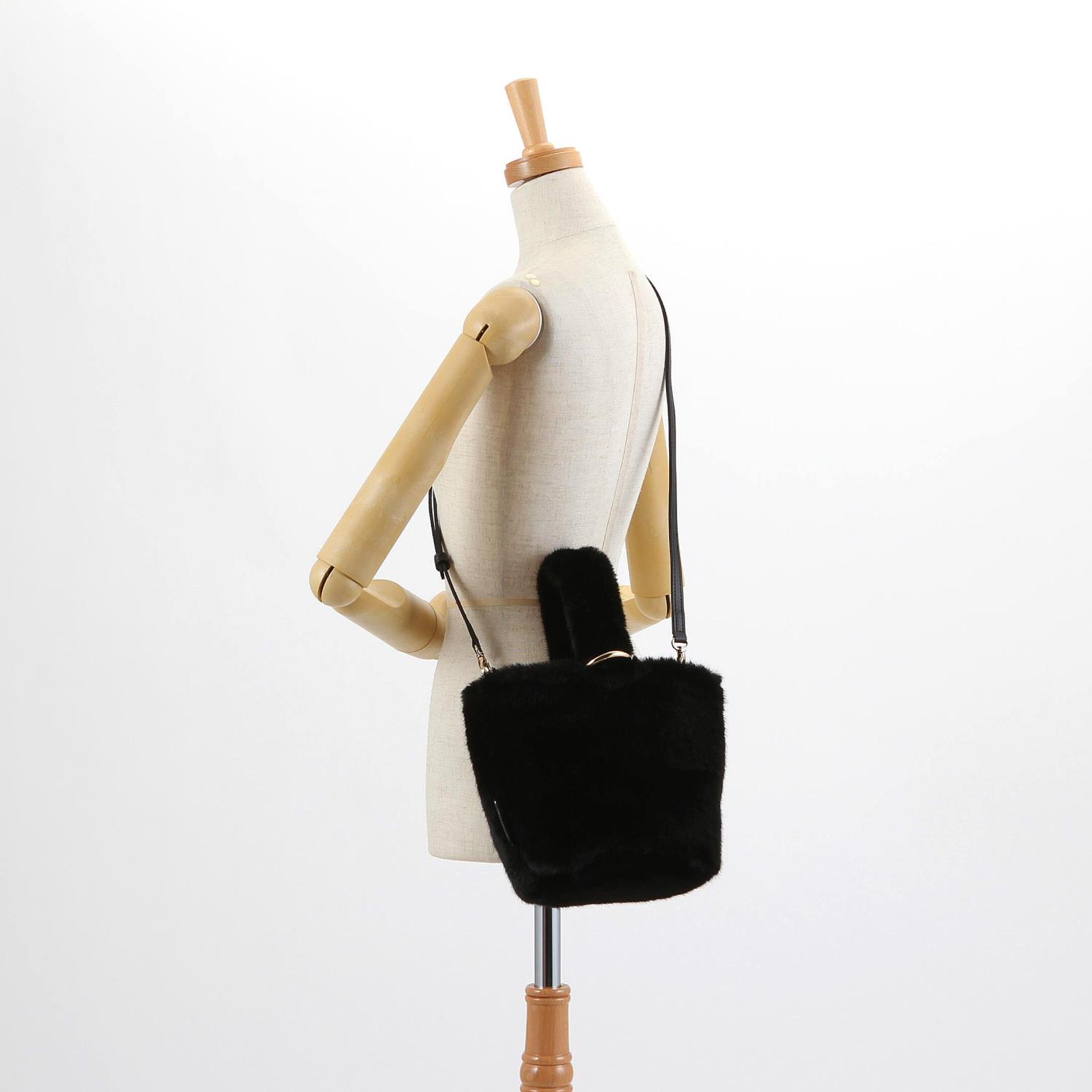 冬のコーディネートにかかせないエコファーを使用したショルダーバッグ。 ふわふわ毛足の太めハンドルとリングの金具がアクセントをプラス。 取り外しのできるショルダー紐が付属した2Way仕様です。
