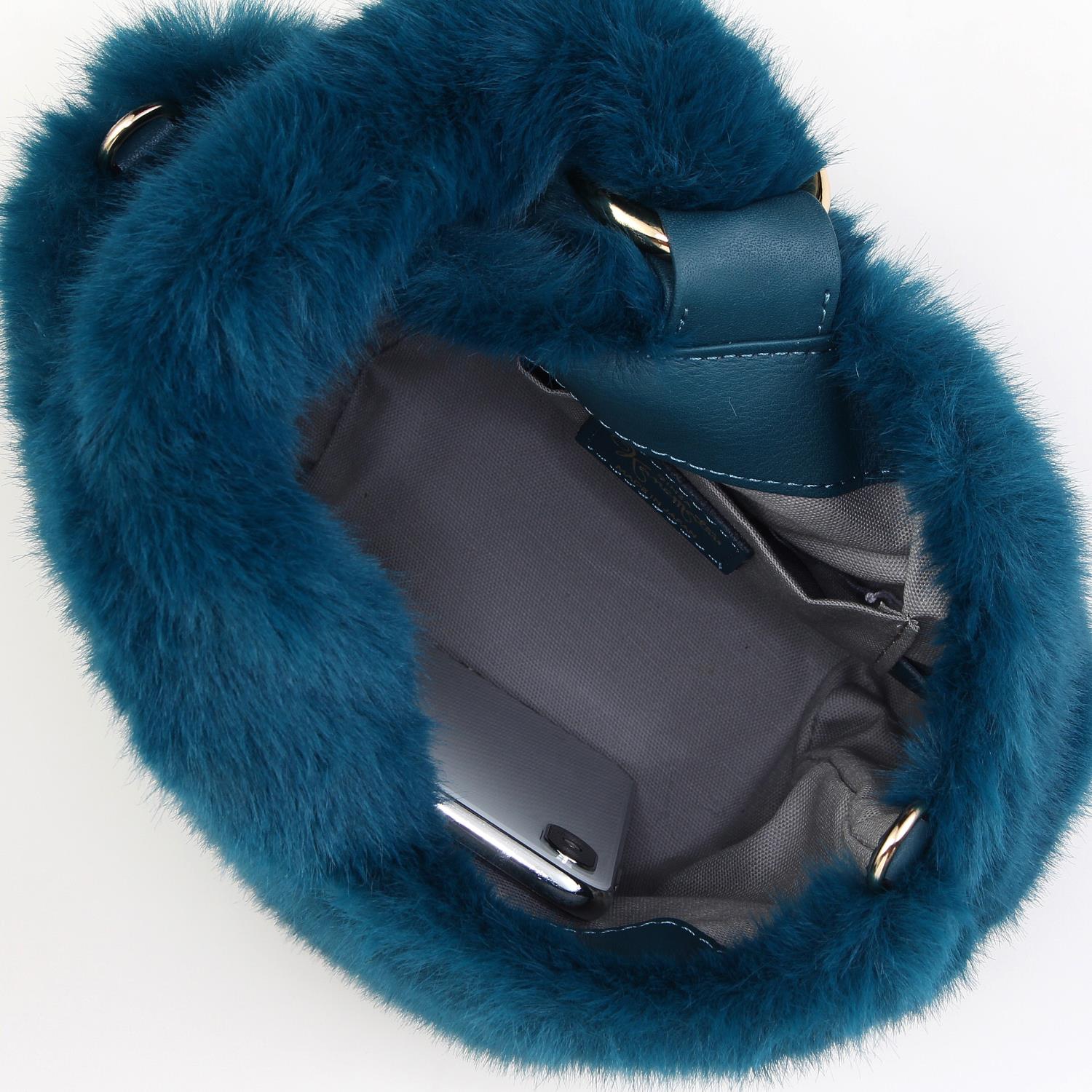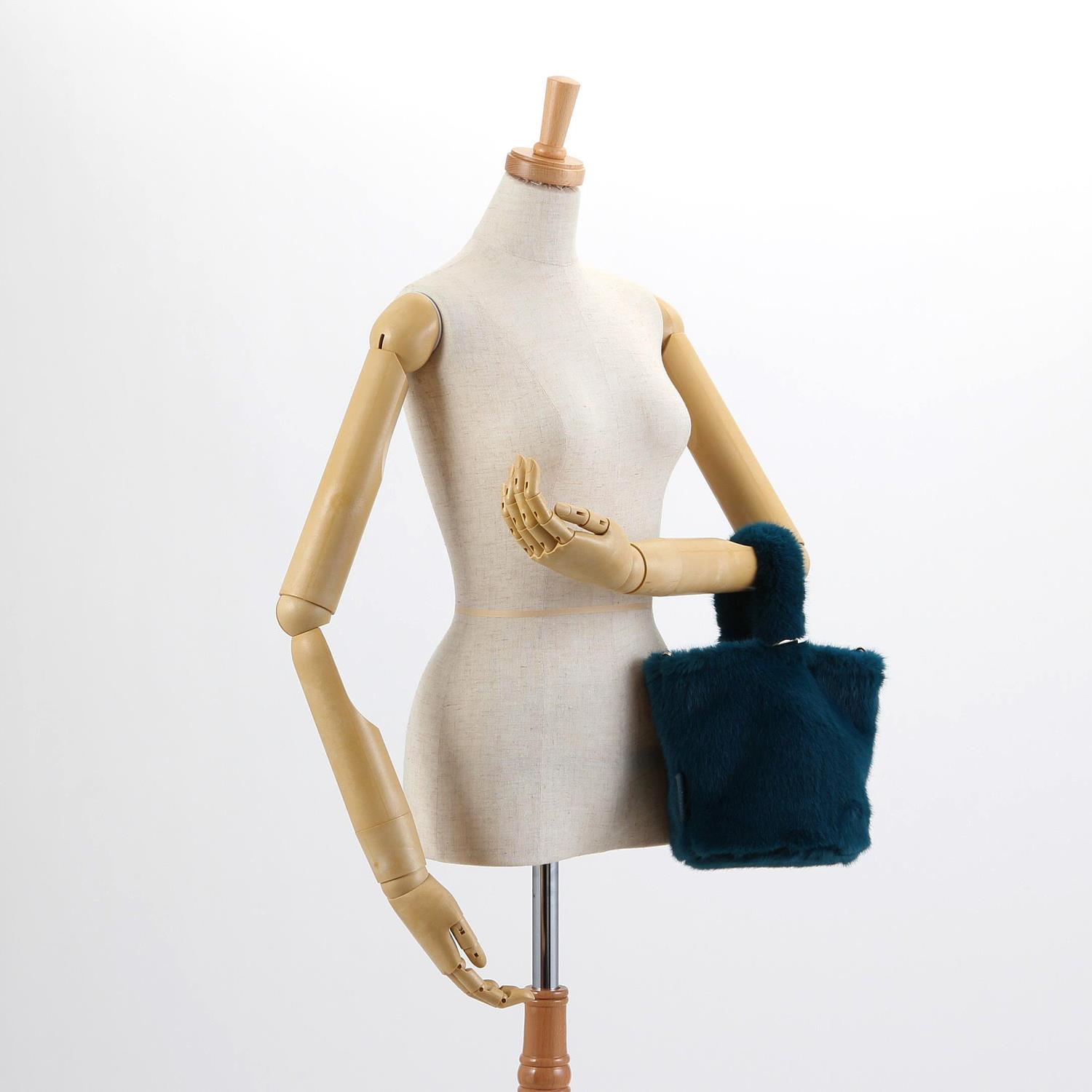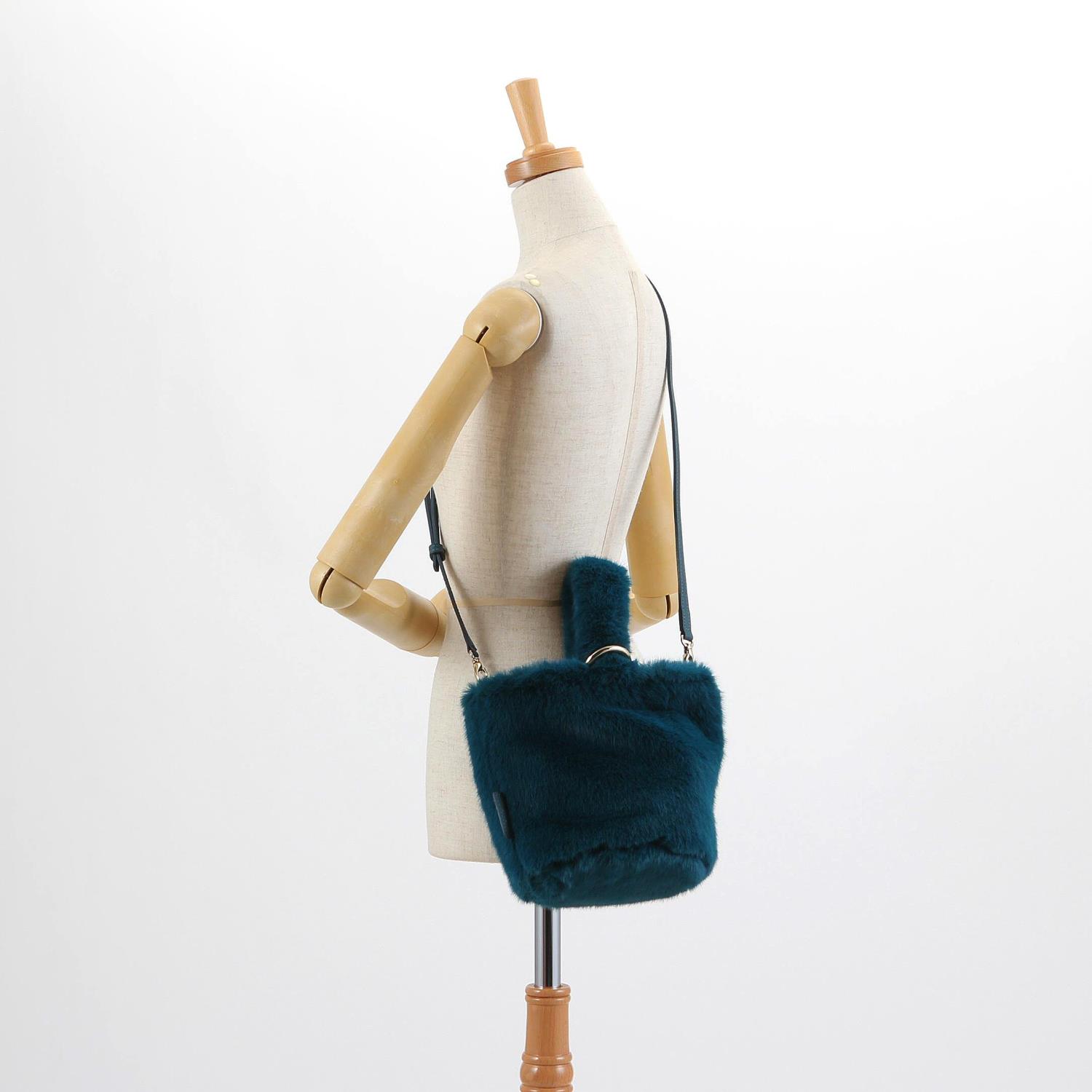 冬のコーディネートにかかせないエコファーを使用したショルダーバッグ。 ふわふわ毛足の太めハンドルとリングの金具がアクセントをプラス。 取り外しのできるショルダー紐が付属した2Way仕様です。