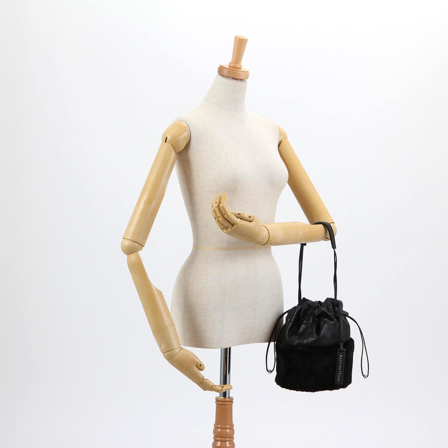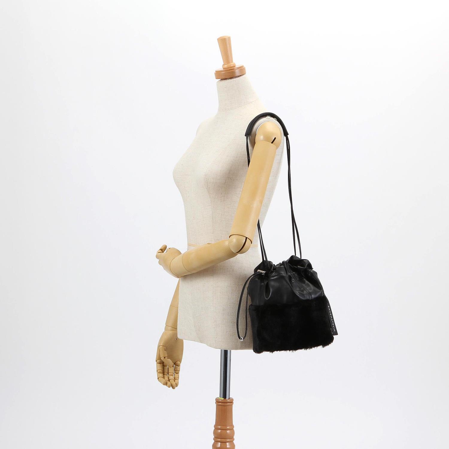 【KANEMATSU Lab./環境配慮型商品】 サスティナブル背景の素材をトレンド感ある巾着デザインで表現し、フェイクファーで季節感を高めたハンドバッグ。 紐にはメタルのドローコードストッパーをあしらい、スポーツムードをディテールでプラスし、アクセントにしました。